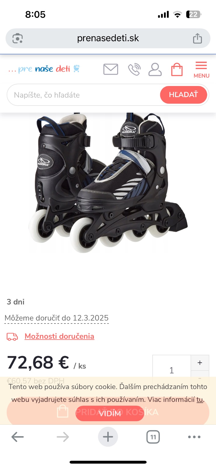 Predám pár krát obuté kolieskové korčule. Super stav ako na foto.