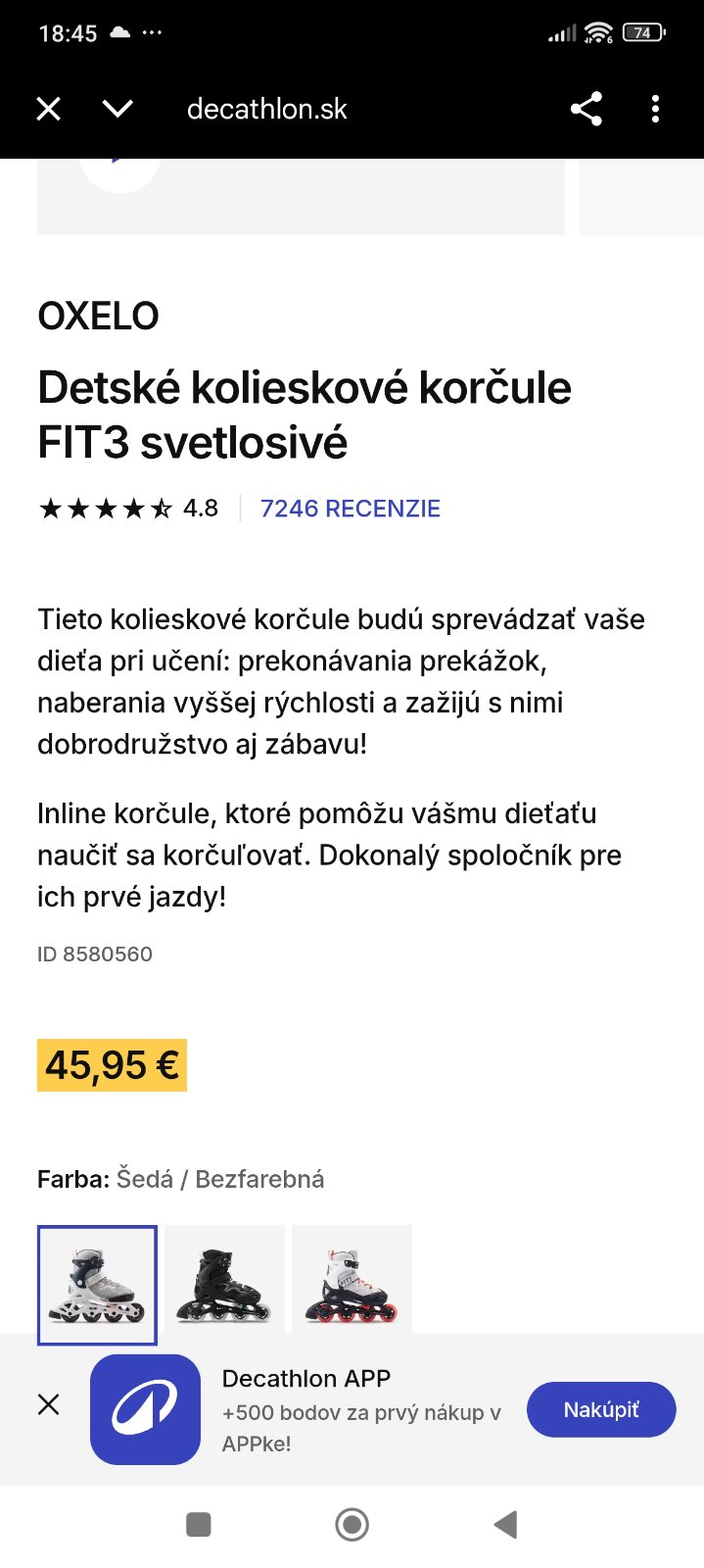 Nové nepoužité korčule Oceli z Decathlonu 35/38 plus chrániče