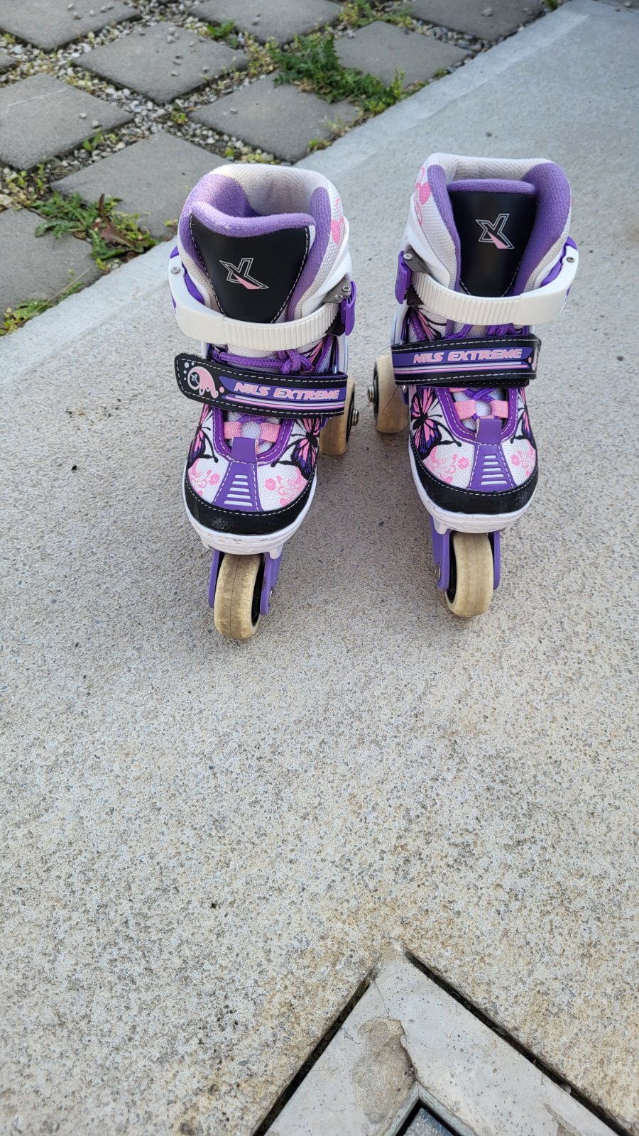 Predám dievčenské kolieskové korčule nastaviteľné na vel.26-29, predstavitelia na 1 rad alebo 2 rady koliesok na korčuliach.