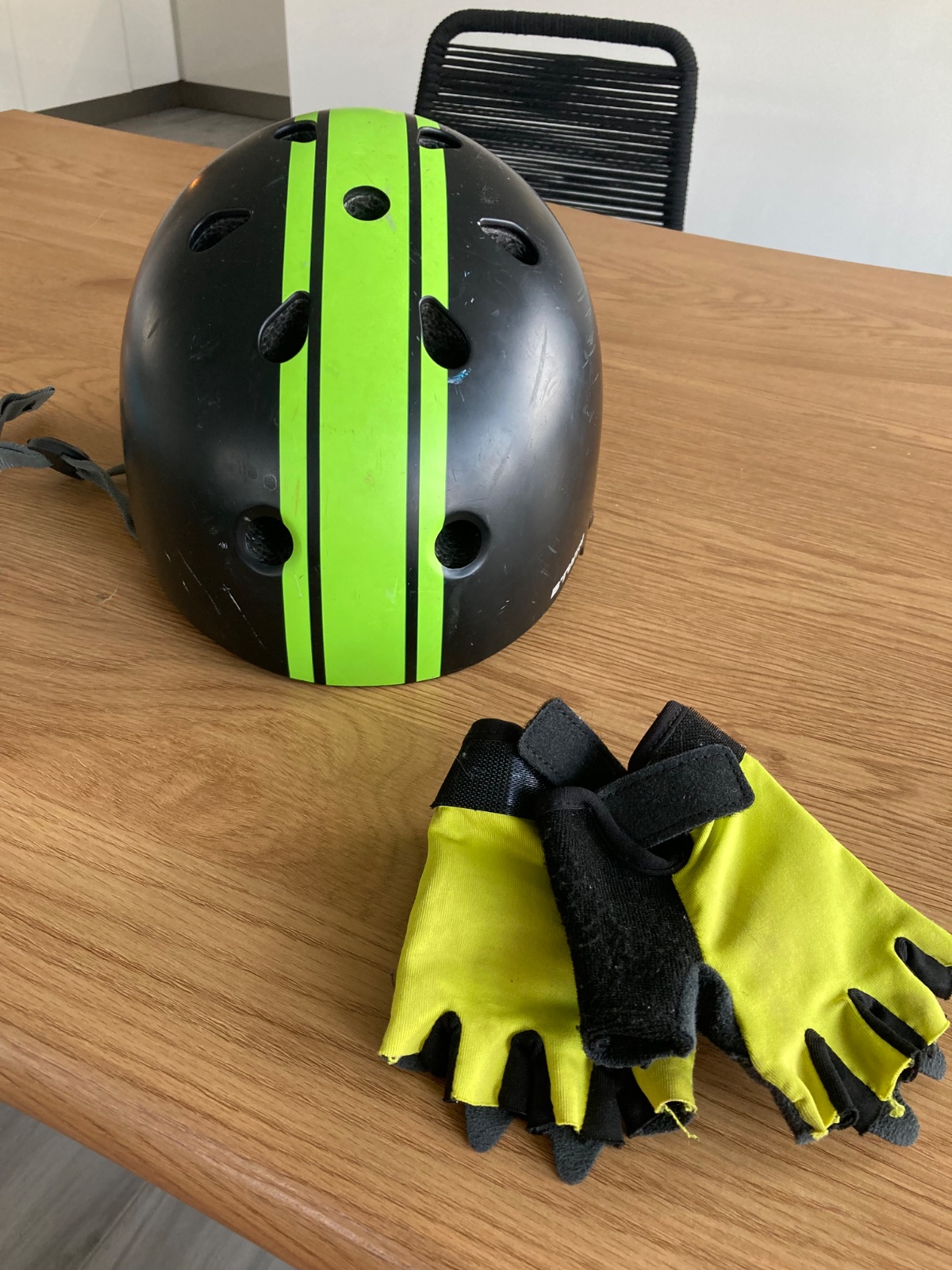 Prilba je veľkosť 50 - 54 cm, dá sa rozťahovať, ochranné rukavičky na dlane zdarma - osobný odber nitra