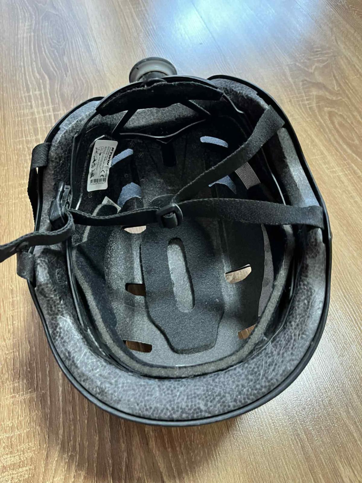Čierna prilba, syn ju využíval na kolobežku, skateboard a na kolieskové korčule.