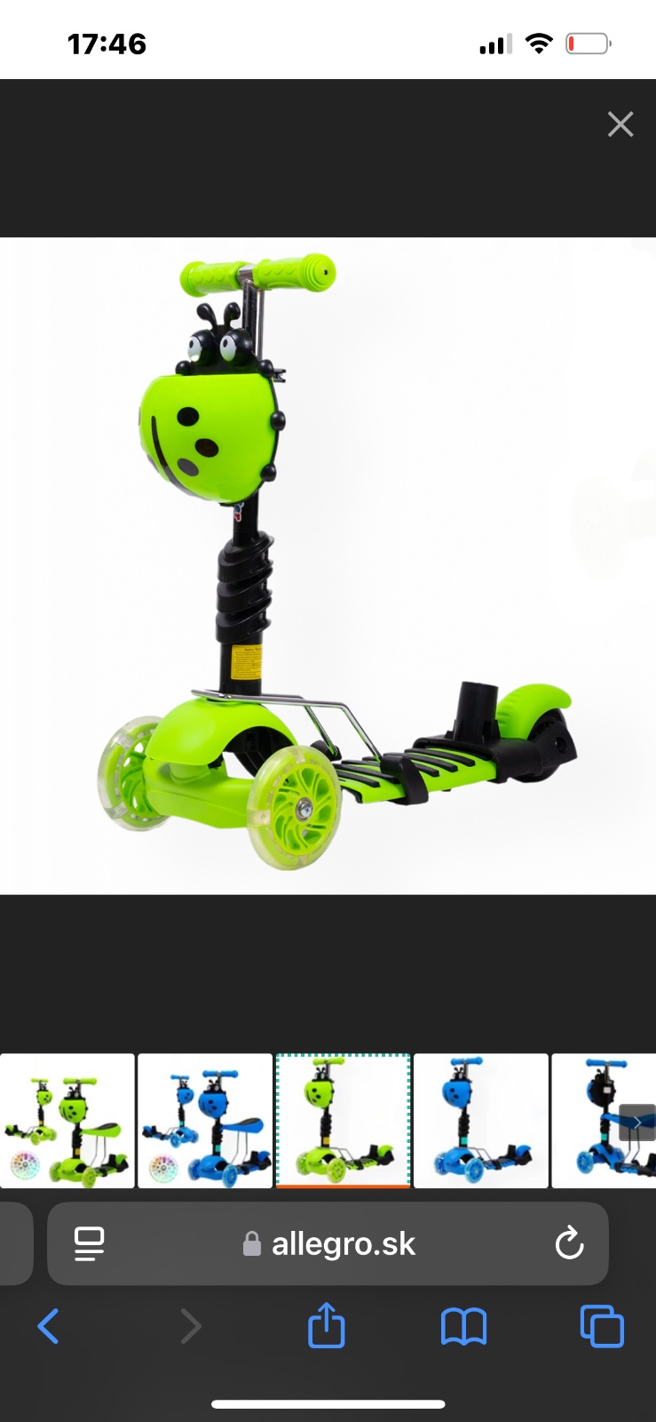 Detská kolobežka 2v1 LIENKA so svietiacimi LED kolieskami v zelenej farbe