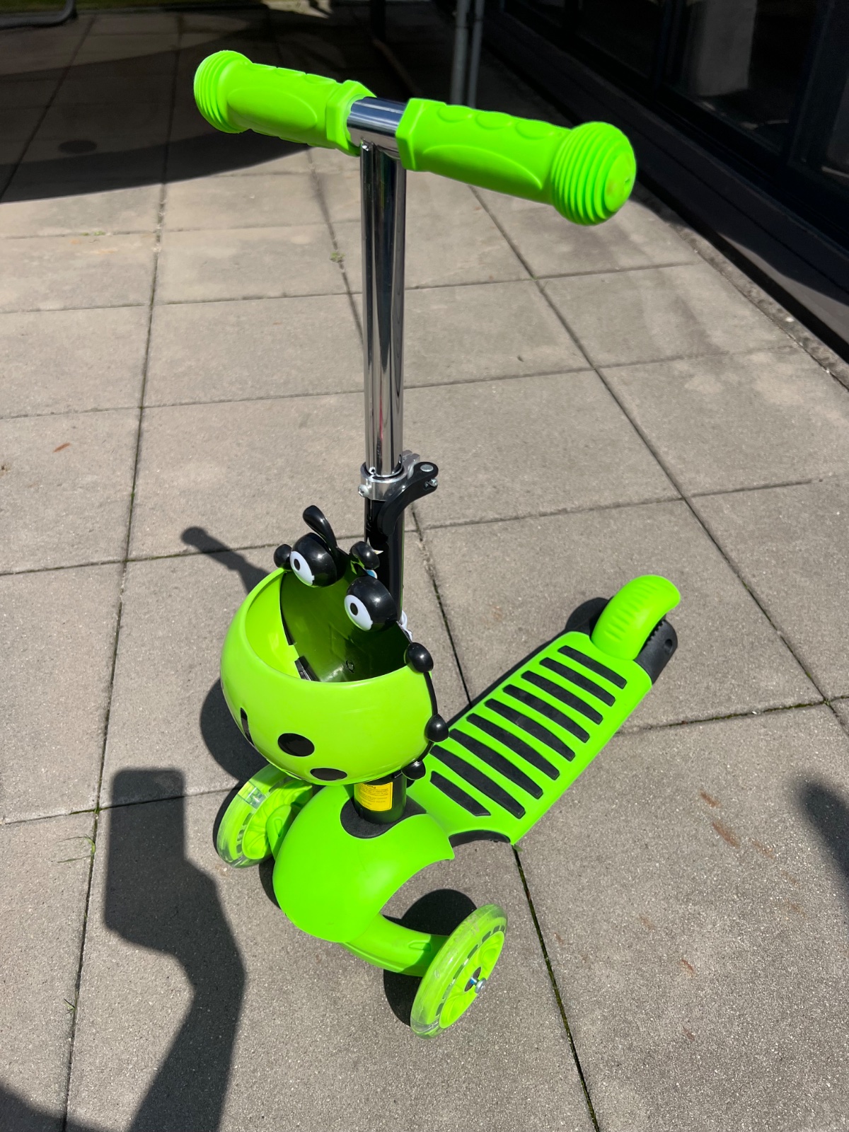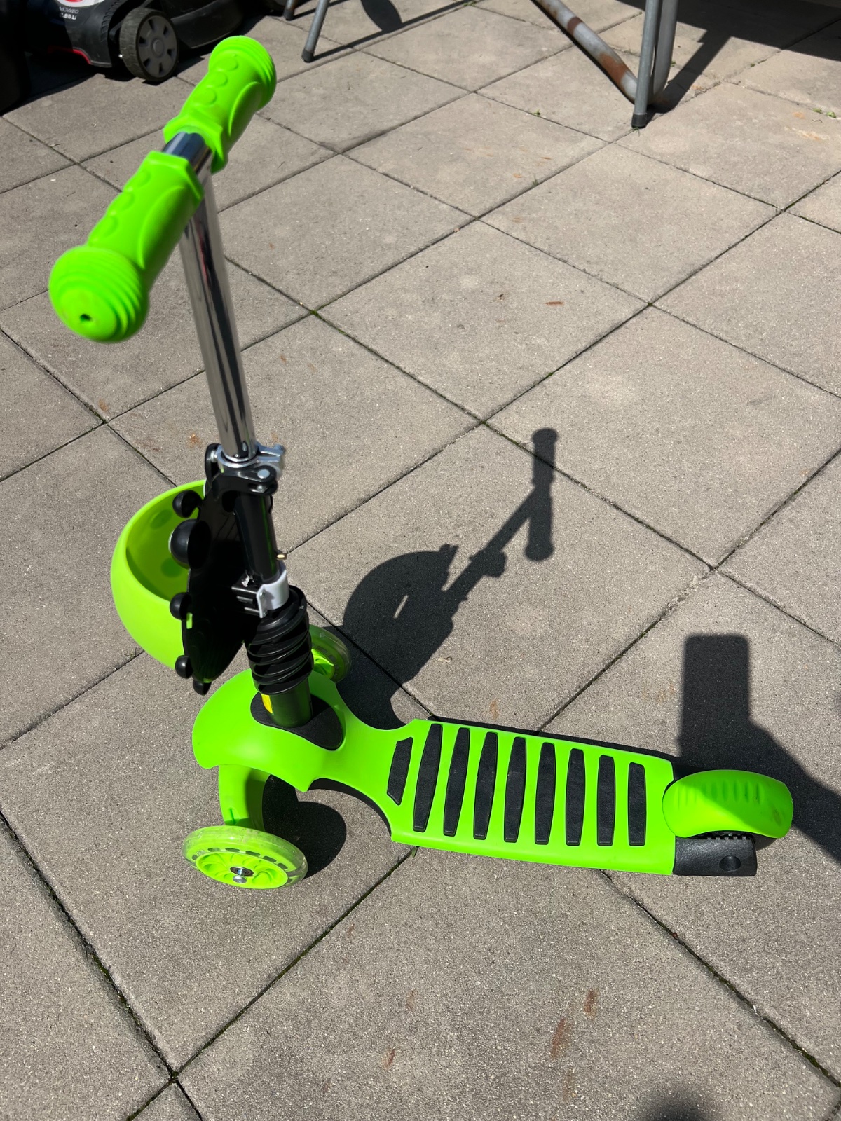 Vďaka odnímateľnému sedadlu, širokému stúpadlu a výškovo nastaviteľným riadidlám bude kolobežka štýlovým spoločníkom na dlhú dobu. S pripevneným sedadlom poslúži zároveň ako odrážadlo. Kolobežka má navyše svietiace LED kolieska.Pre lepšiu stabilitu je kolobežka vybavená dvomi prednými otočnými kolieskami.Je ľahko ovládateľná.