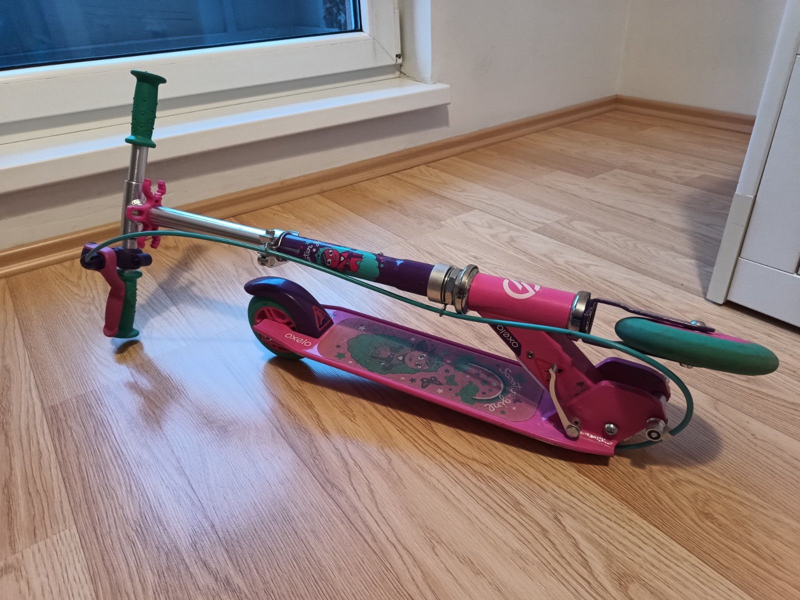 Predám detskú kolobežku zn. Oxelo (Decathlon), plne funkčná, bežné známky používania, výborný stav (málo používaná), kolieska nezjazdené. Kolobežka je vhodná na výšku 95 cm - 125 cm, pre deti vo veku cca 3-6 rokov. Riadidlá nastaviteľné na 2 výšky, dvojitý brzdový systém (vpredu ručná brzda + brzda na zadnom kolese), možné zložiť a prenášať s pomocou ramenného popruhu.