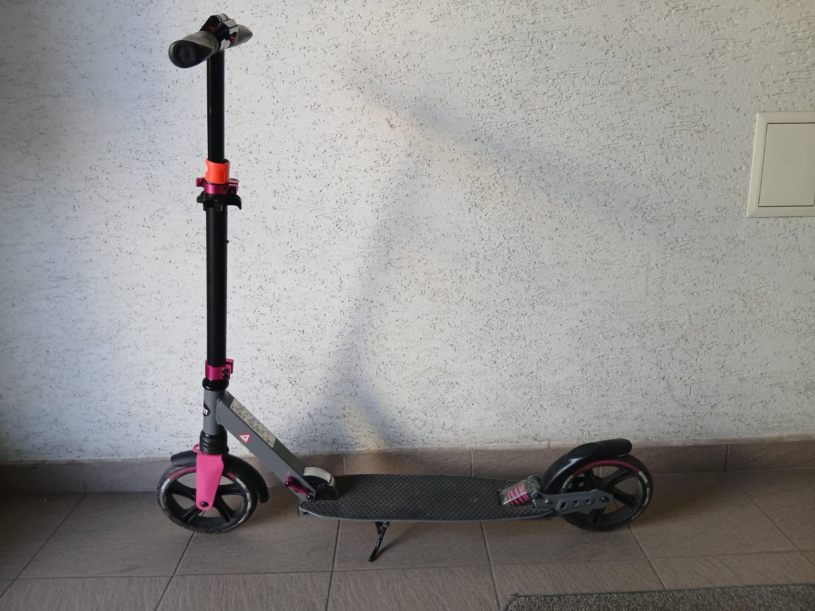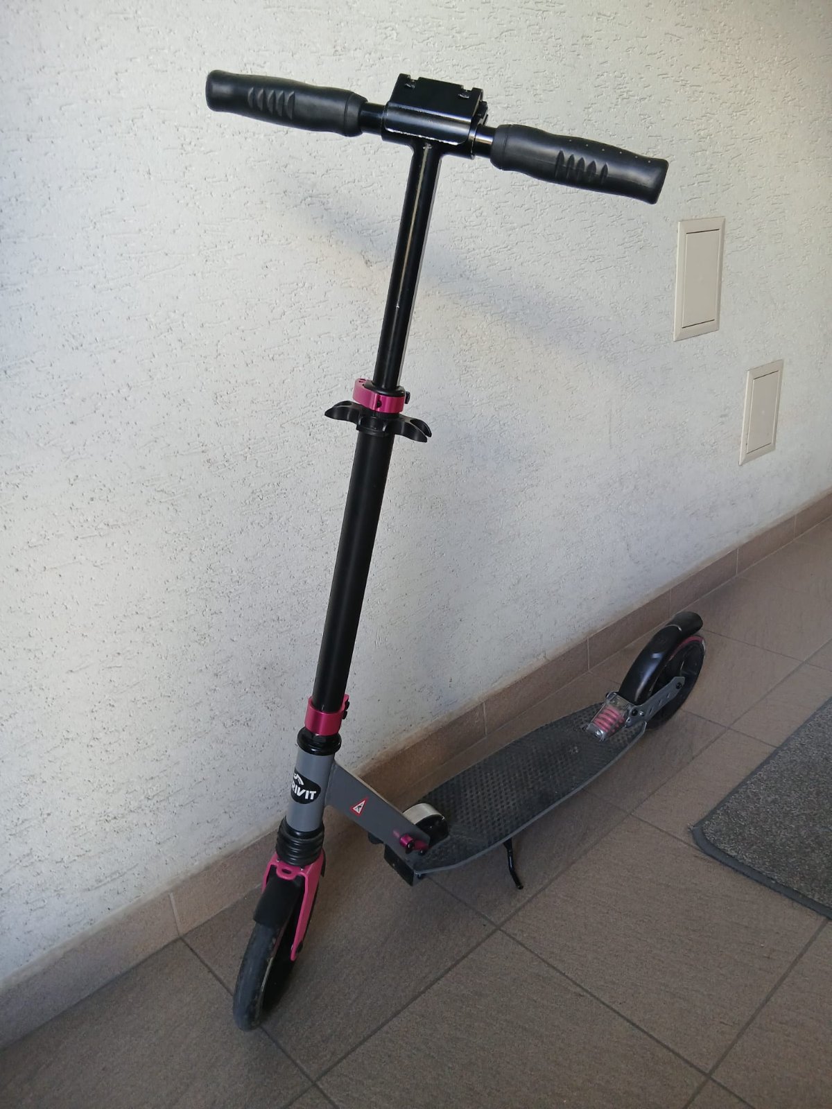 Predám kolobežku pre dievča čierno-ružovej farby, zn.Arcore shorty, predné koleso väčšie 16" (priemer 40 cm), zadné 12" priemer 30 cm, s ručnou brzdou a stojanom. Kúpená v športovom obchode. V pek...
