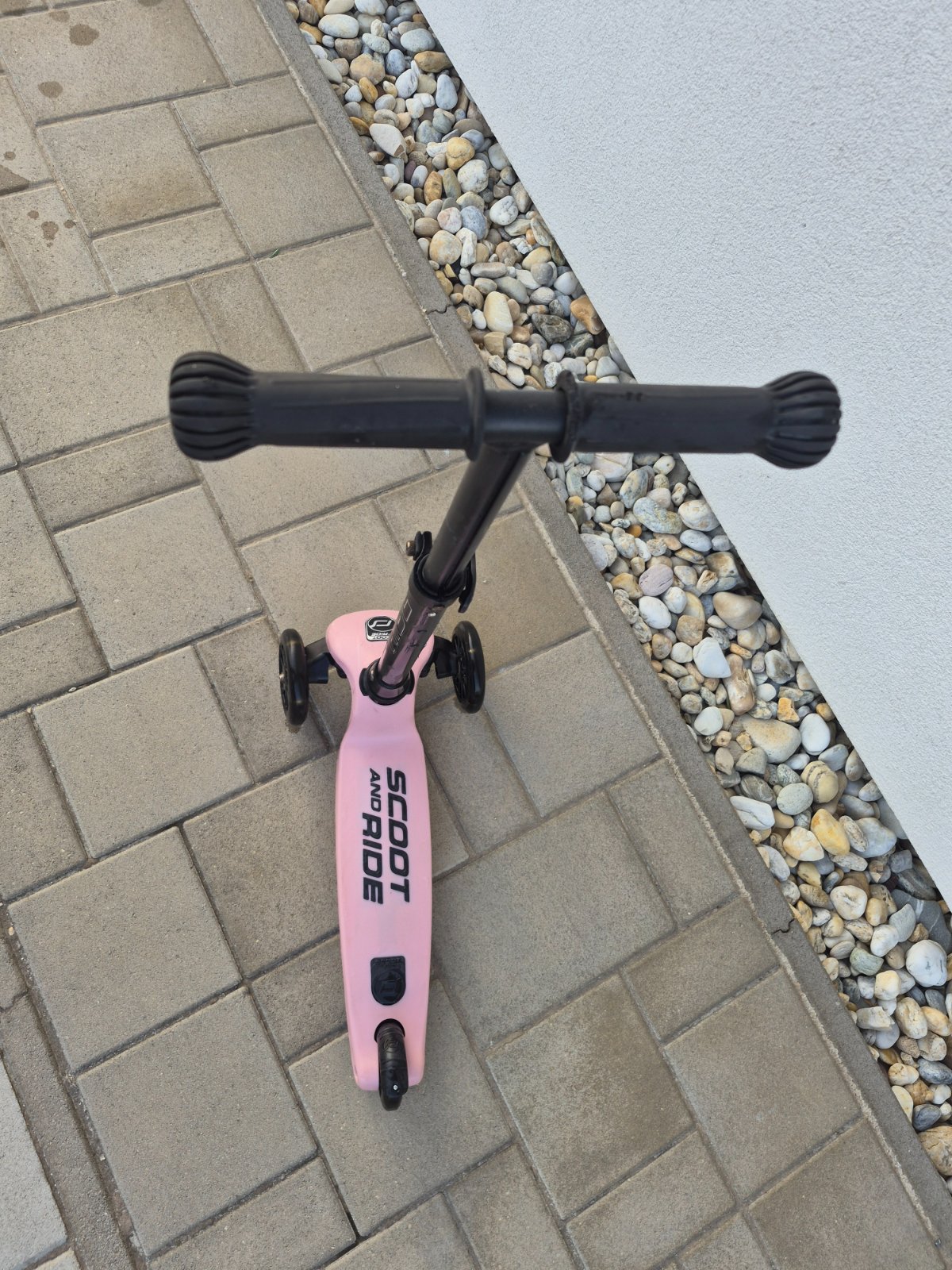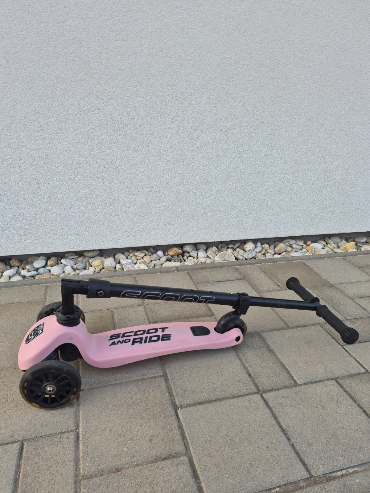 Predam kvalitnu kolobezku Scoot and ride. Od 3 do 7 rokov. Led kolieska svietia. Da sa jednoducho zlozit. Vyskovo nadstavitelna. Velmi pekny pouzivany stav, len guma na rididlach je trosku nacata dietatom, ale nic moc viditelne ani nenarusa cinnost.