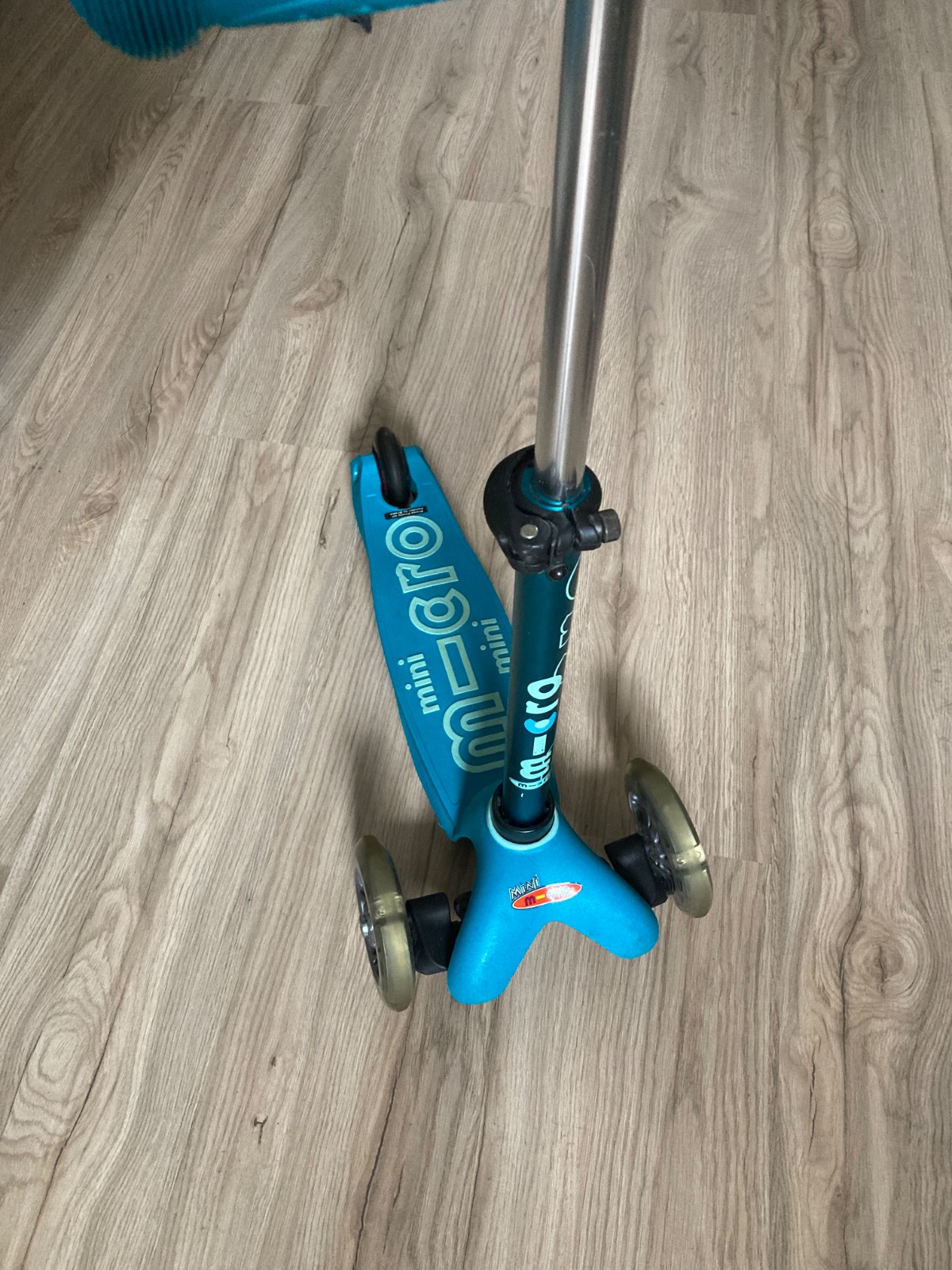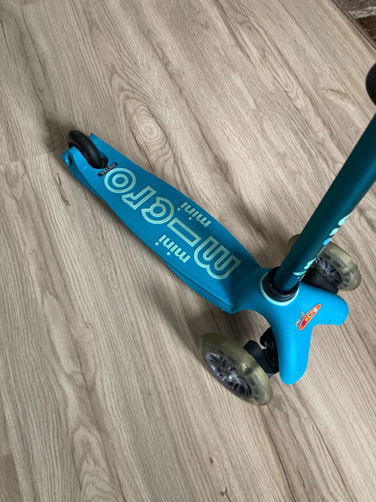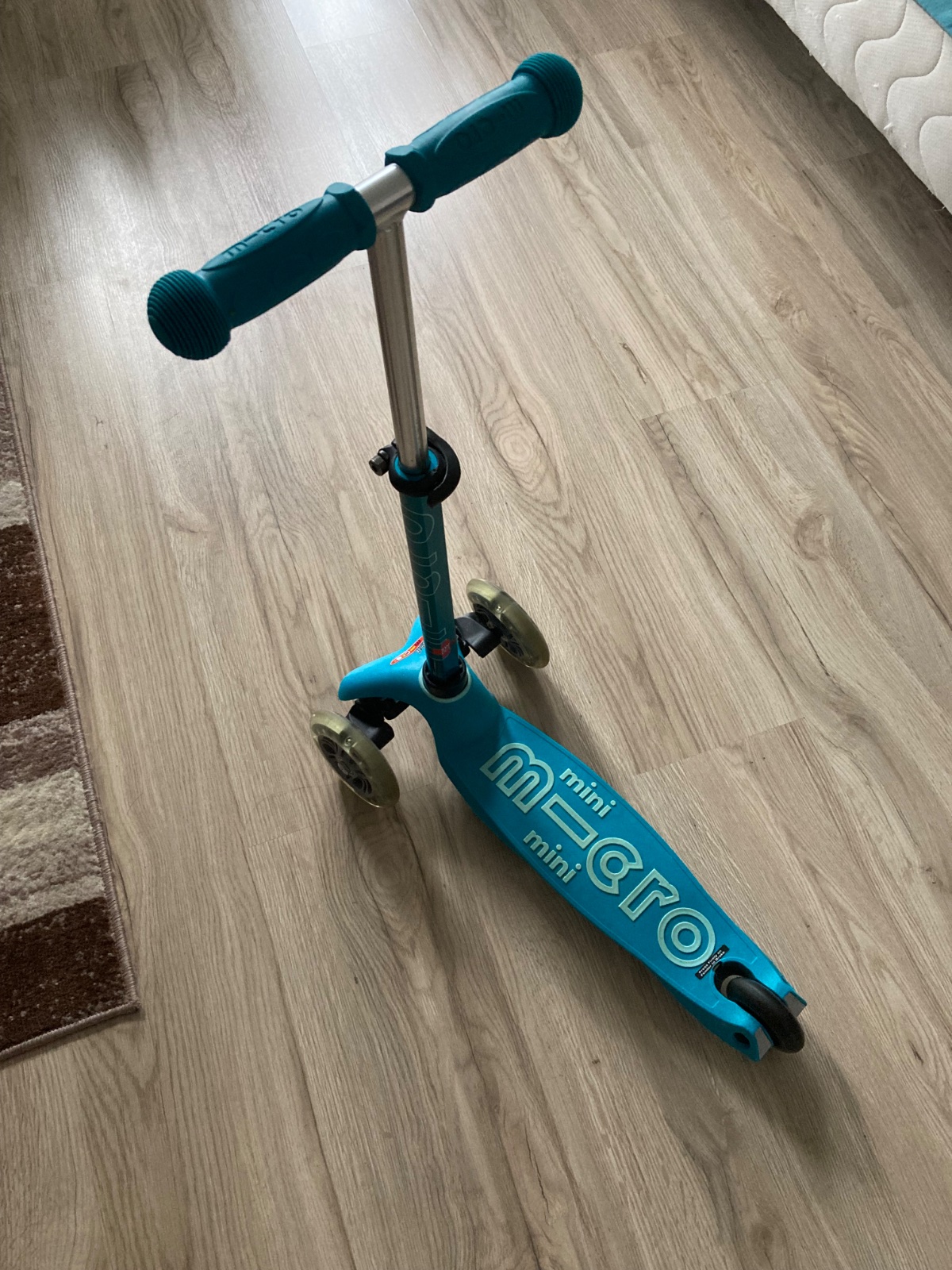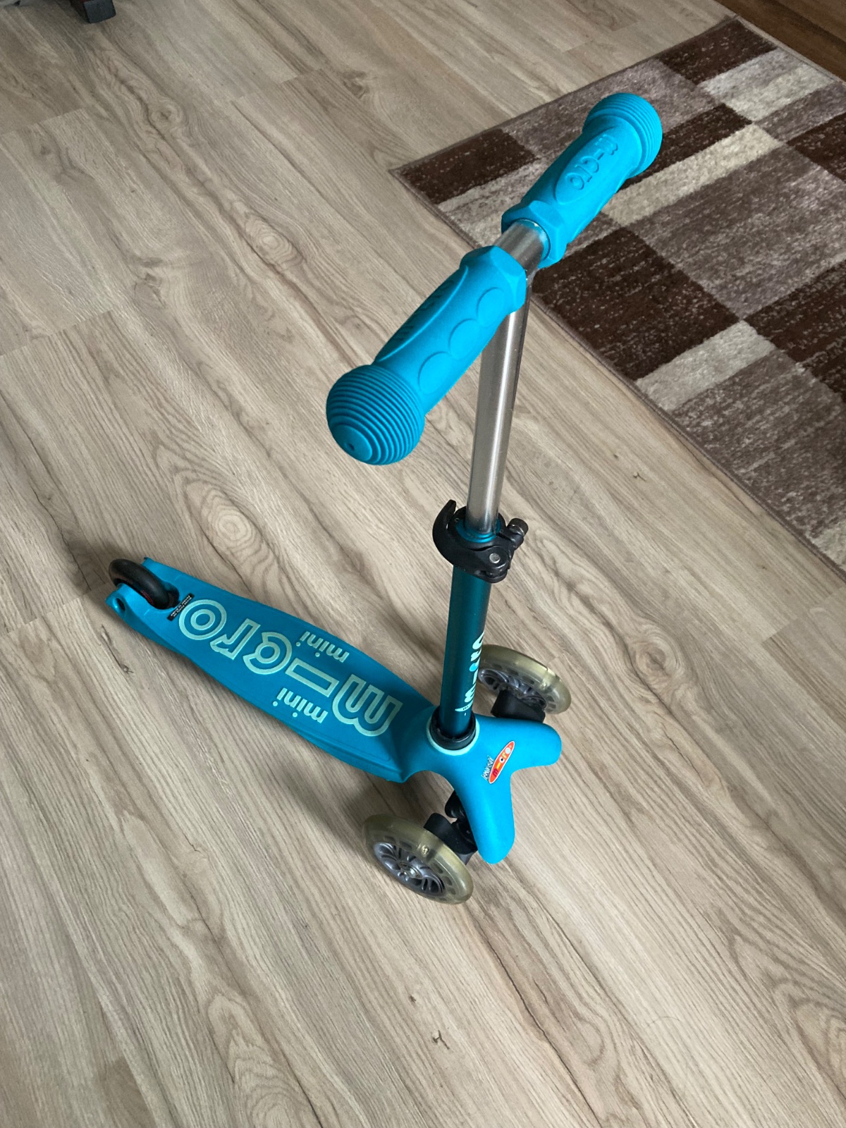 Predam detsku kolobezku micro mini so svietiacimi kolieskami, vhodna pre chlapcov aj dievcata. Pouzivana bola len v byte, kedze sme dostali dva rovnake darceky. Na kolobezke chyba brzda na zadnom koliesku, nedopatrenim sa zlomila. Inak je len s minimalnymi znamkami opotrebovania. Kolobezka bola kupovana vo Svajciarsku.