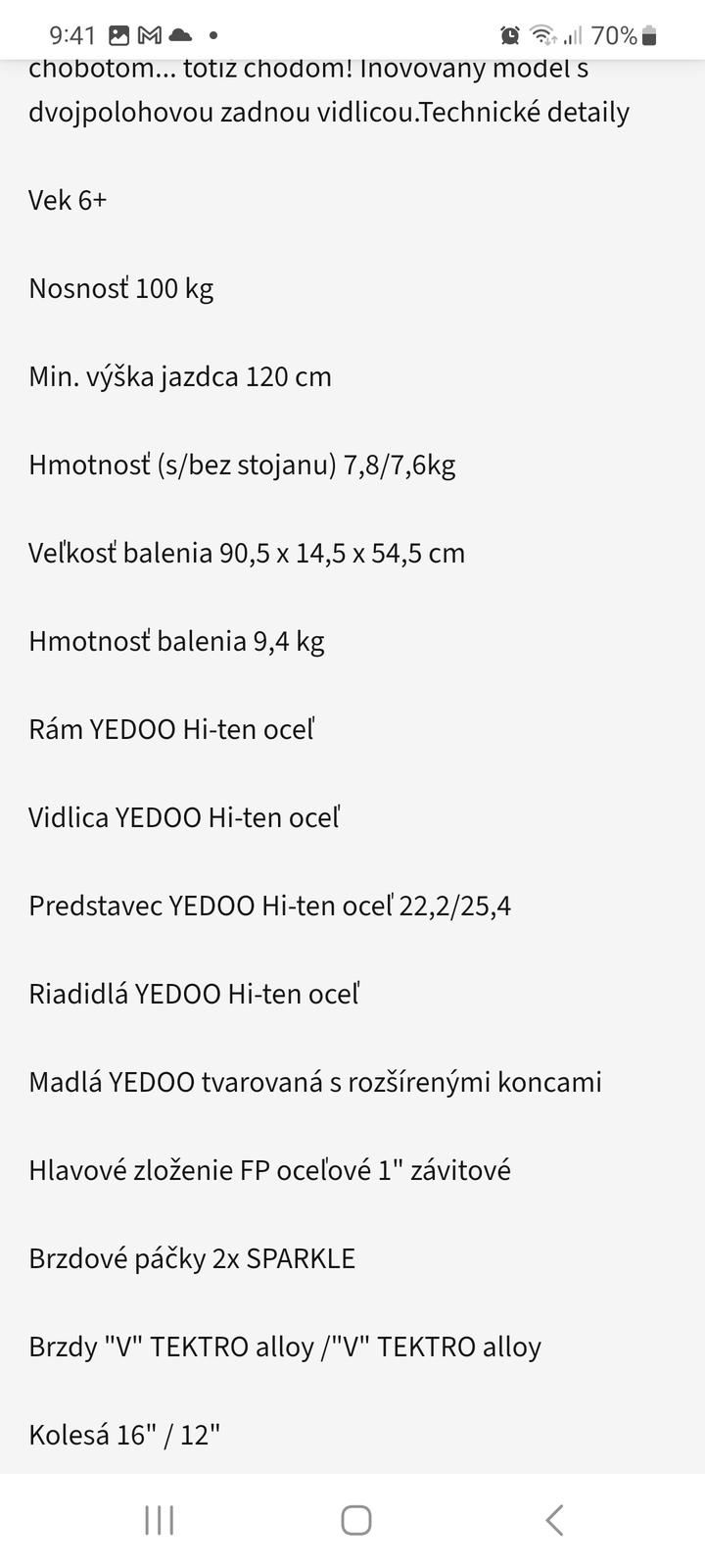 Minimálne(párkrát)použitá kolobežka,napriek tomu má nejaké odreniny.Nafotené,len osobný odber.Perametre vo fotkách.