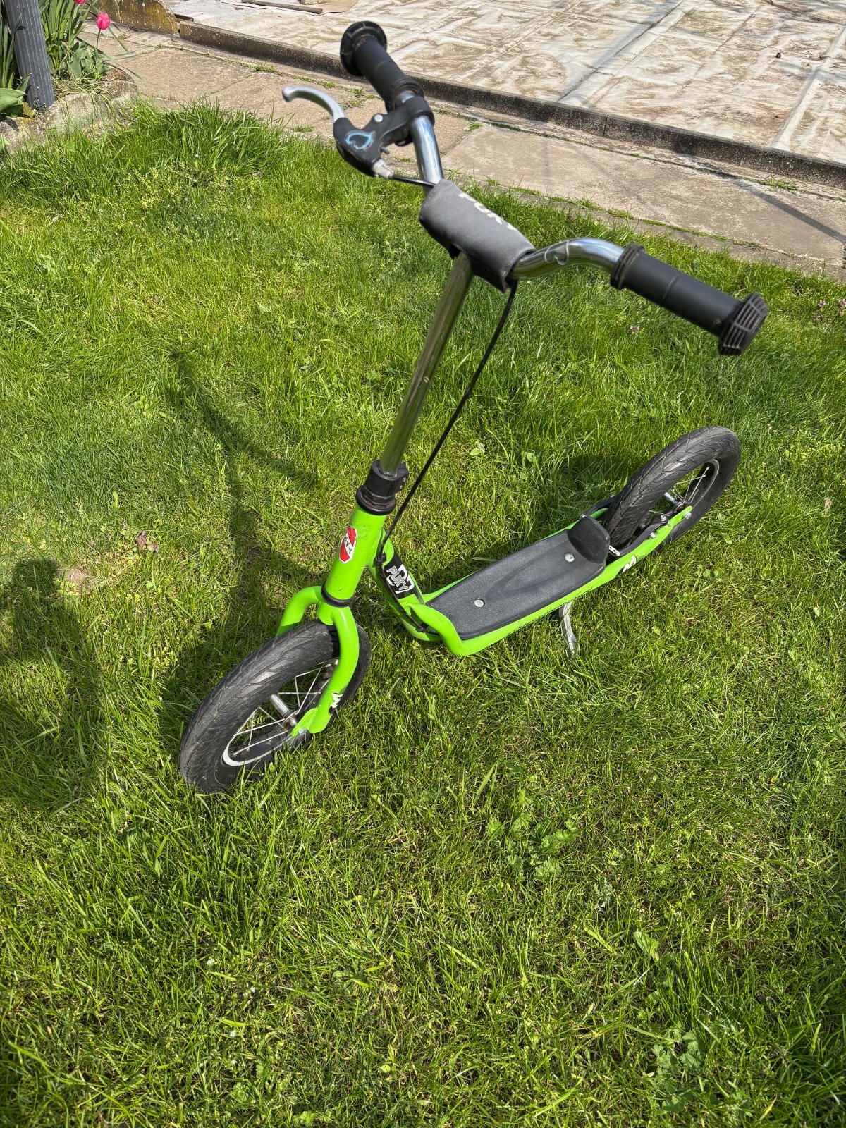 Nemecká značka, pre deti od 5 rokov. Max. nosnosť je 85kg. Skoro nepoužívana, ale má menšie známky starnutia, lebo stála niekoľko rokov na balkóne. S ručnou brzdou, stojan na zaparkovanie. Nová stála 140€.