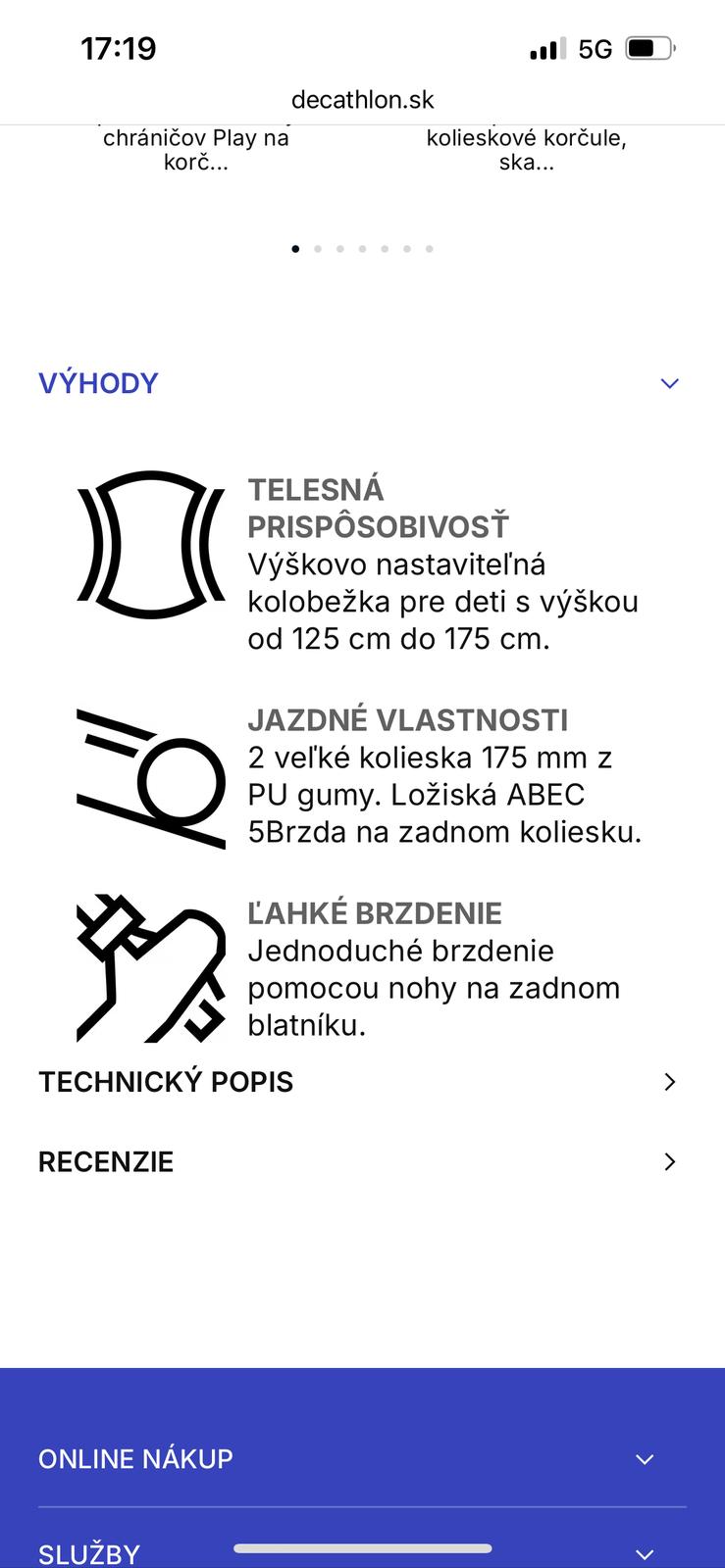 Modro biela kolobezka vhodná pre deti výška 125-175 cm