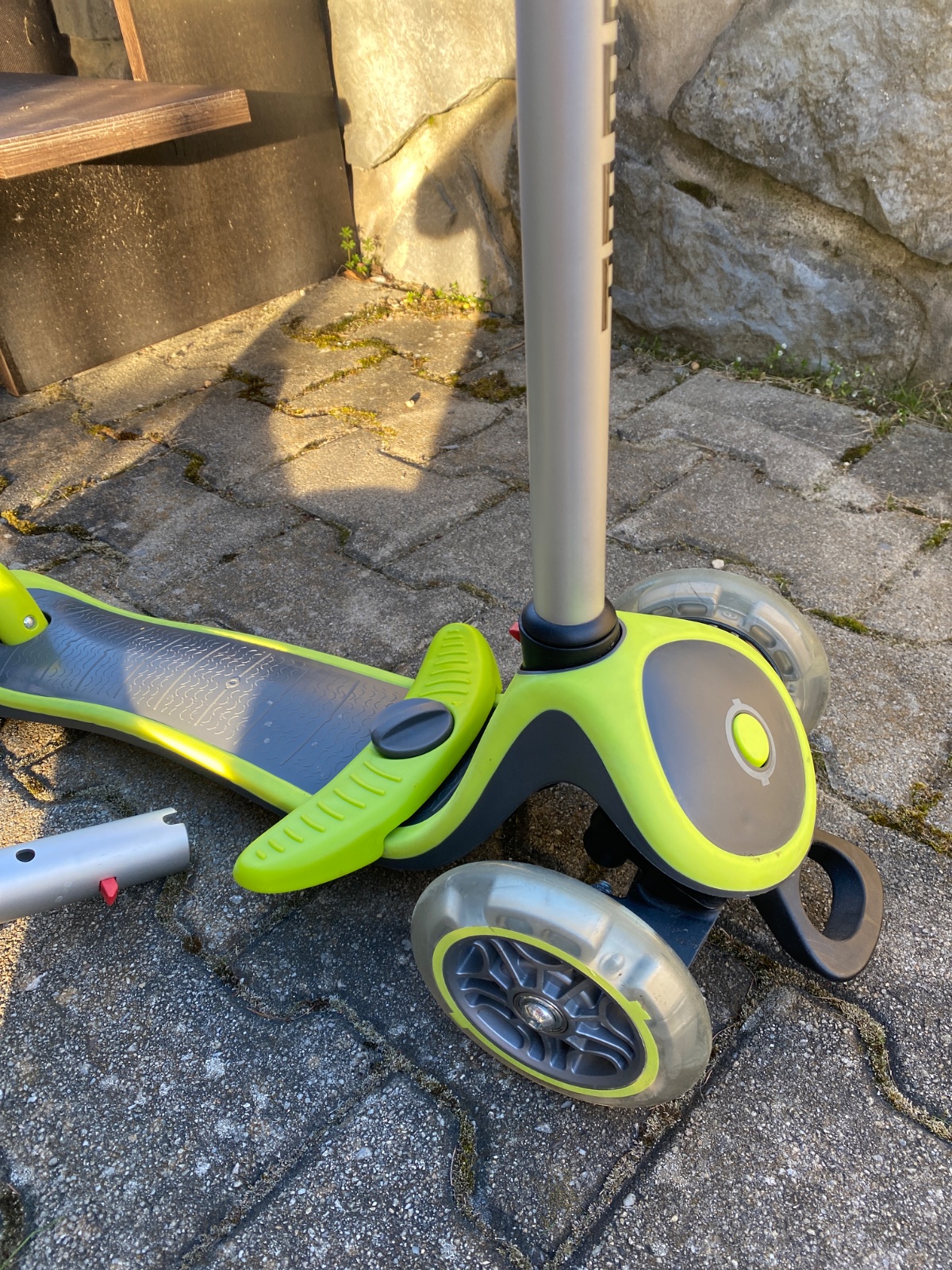 Detská kolobežka 2v1 LIENKA so svietiacimi LED kolieskami v zelenej farbe Vďaka odnímateľnému sedadlu, širokému stúpadlu a výškovo nastaviteľným riadidlám bude kolobežka štýlovým spoločníkom na d...