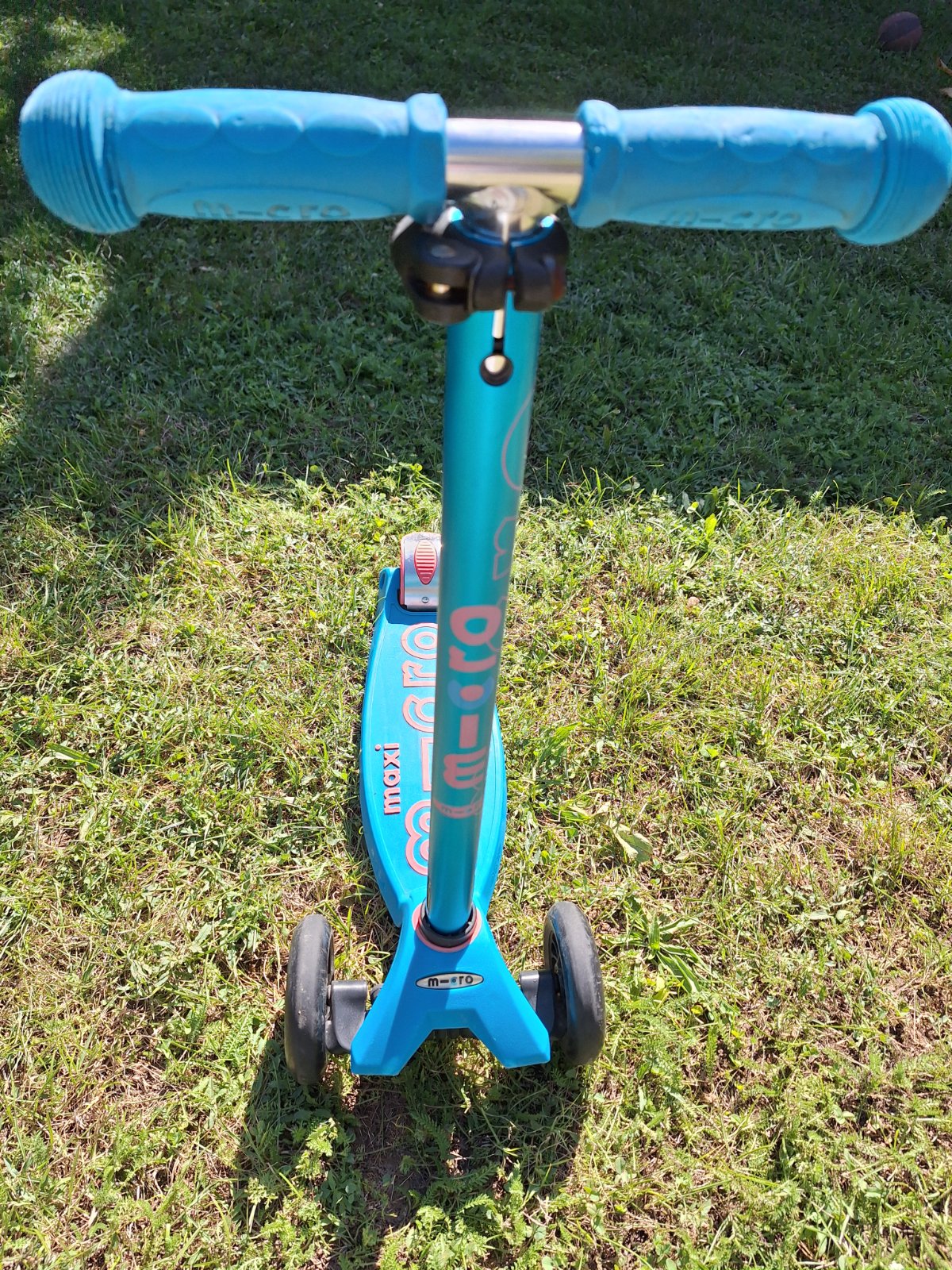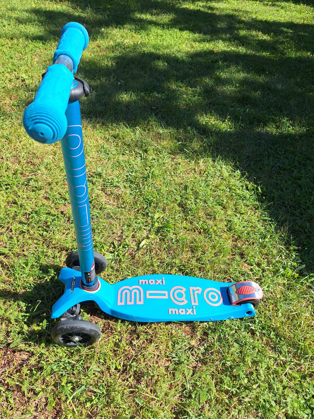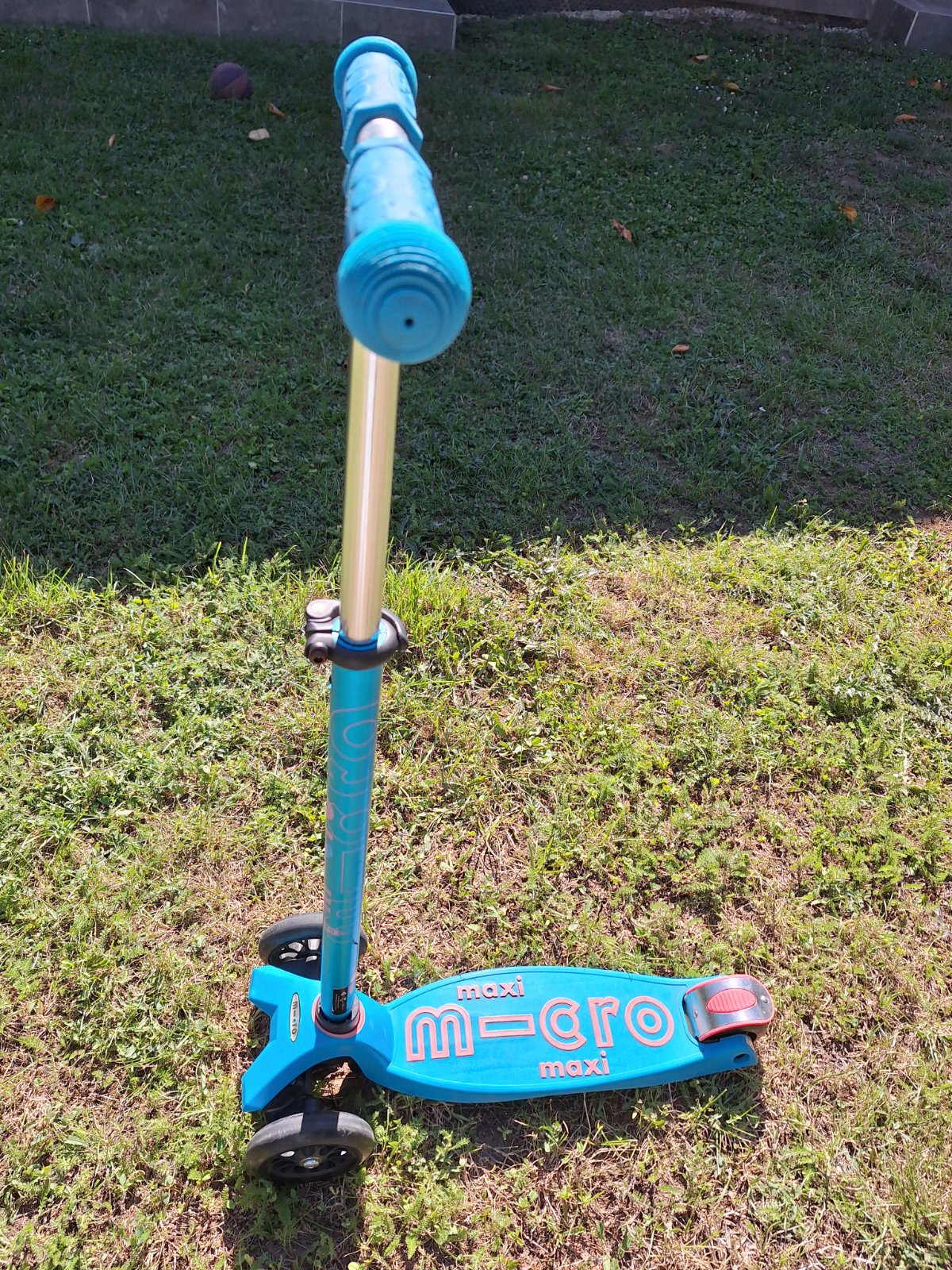 Kolobežka Maxi Micro Deluxe vo výbornom stave, iba s bežnými známkami opotrebenia. Po jednom dieťati. Krásna tyrkysová farba. Nosnosť do 70 kg, Vek od 5 do 12 rokov.