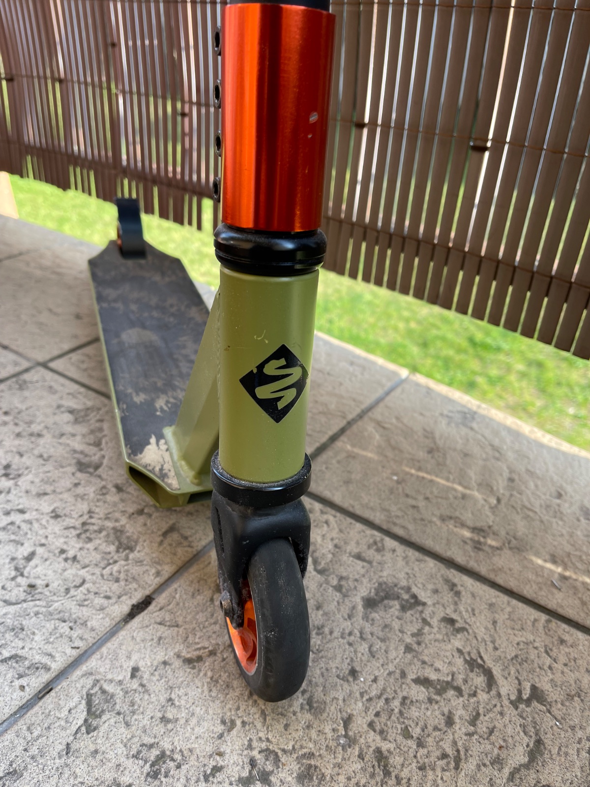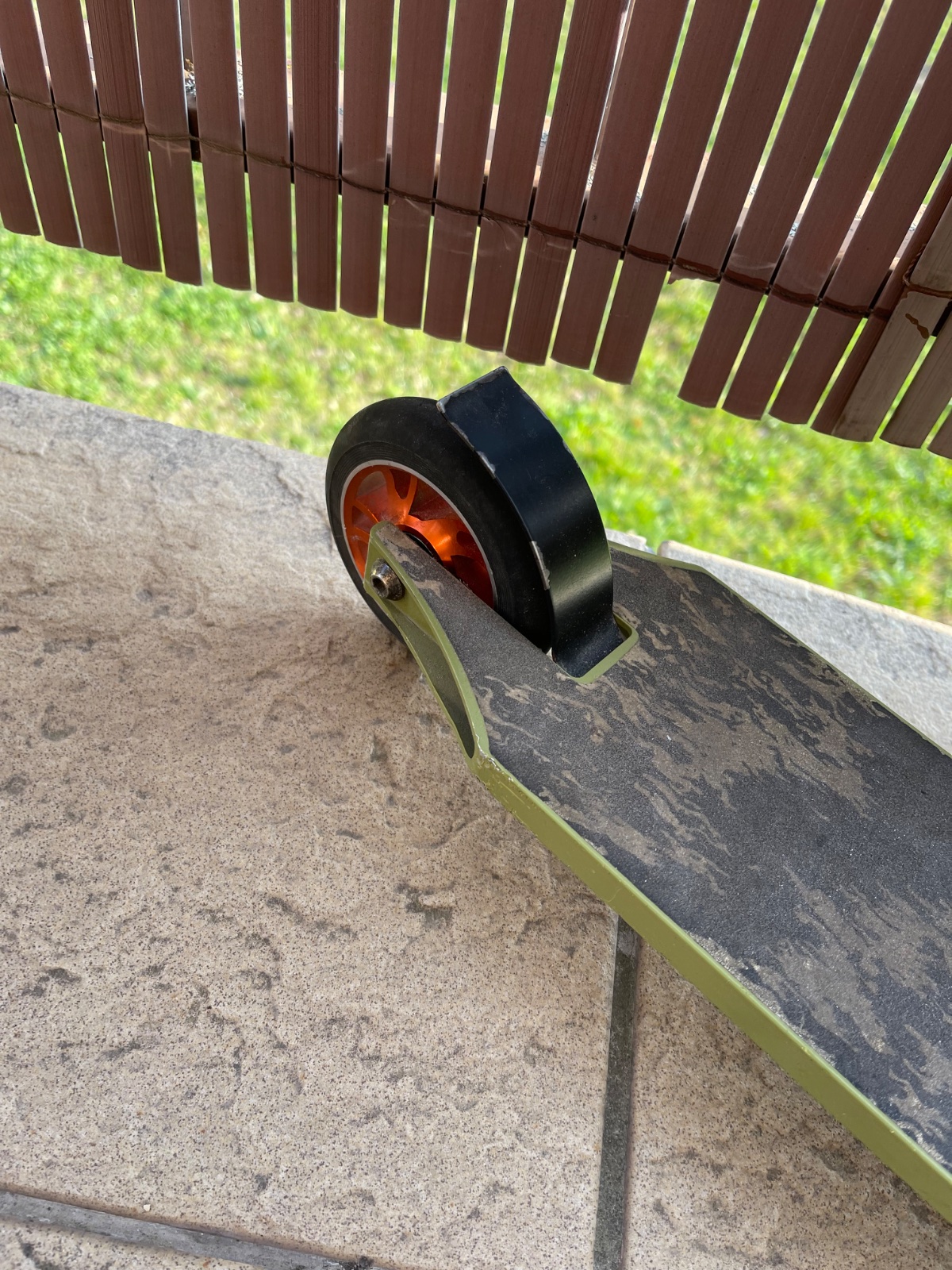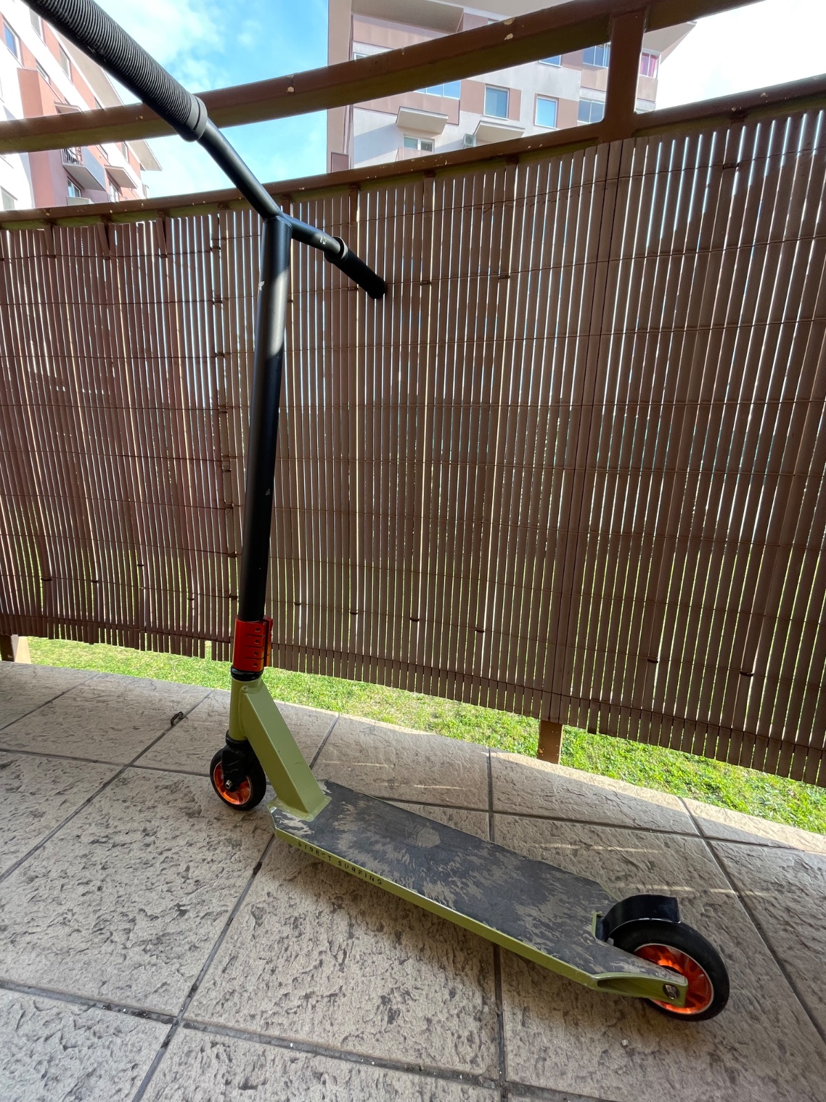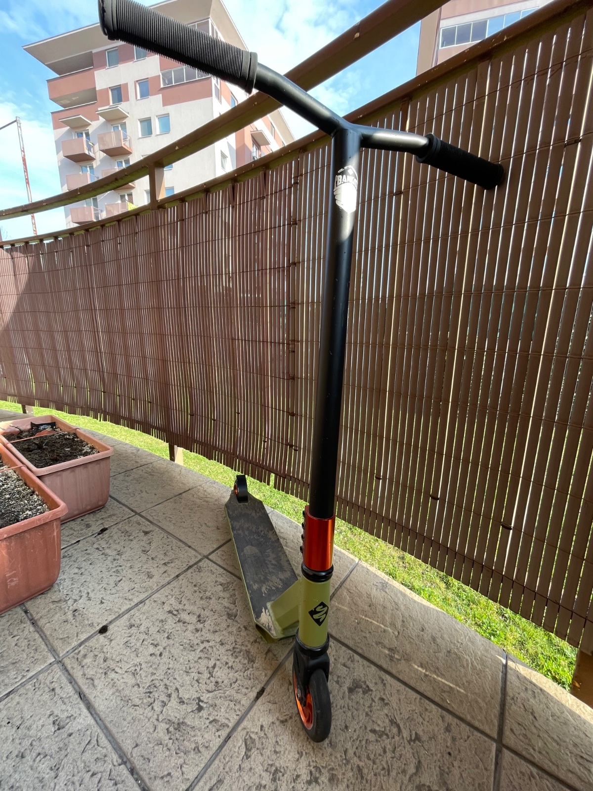 Kolobežka je málo používaná ale má pár odrenín. Kupovaná je v Exi športe za cca 80€. Výška od zeme po volant je cca 80cm a dľzky spodnej časti je cca 50cm.