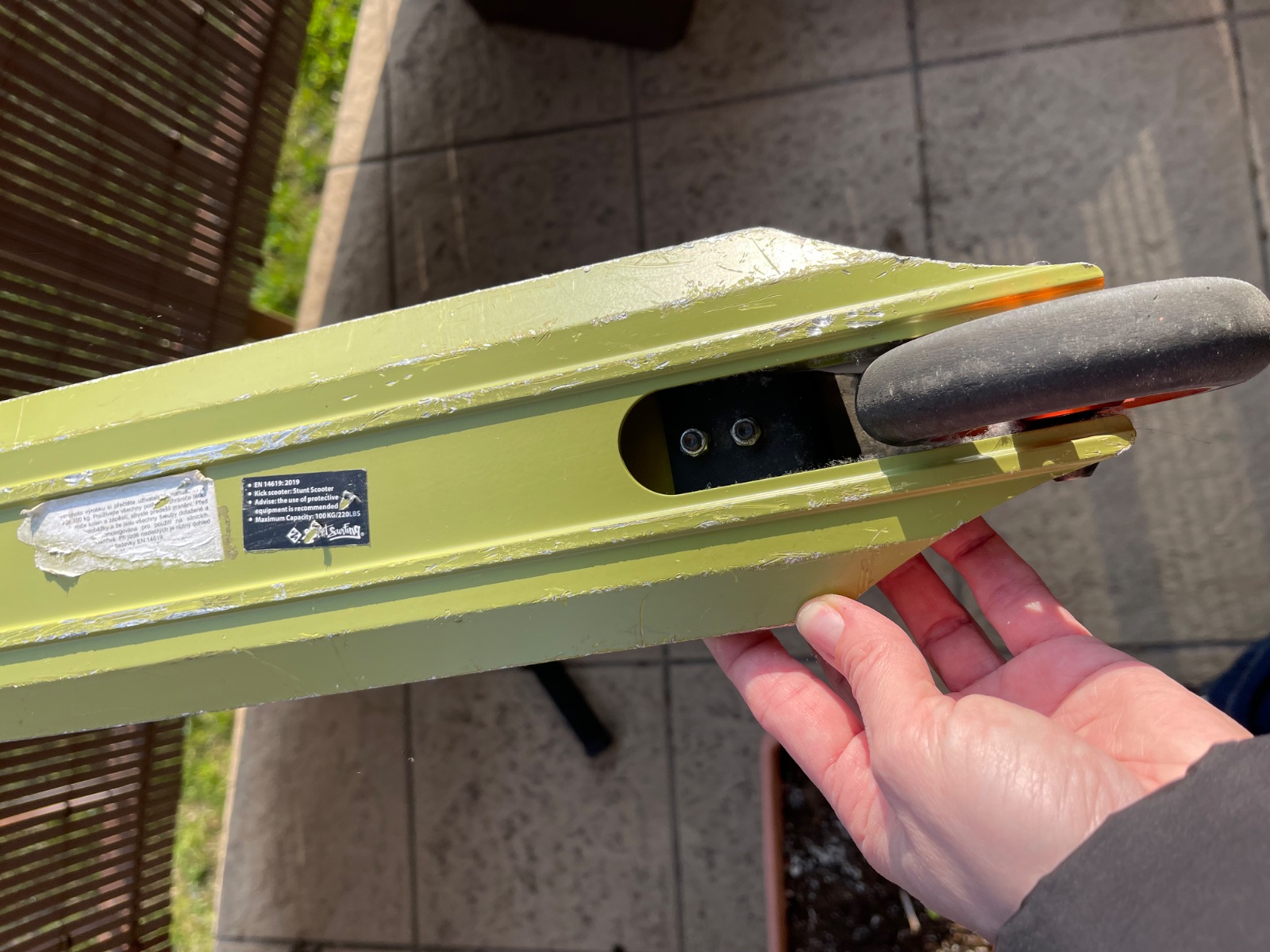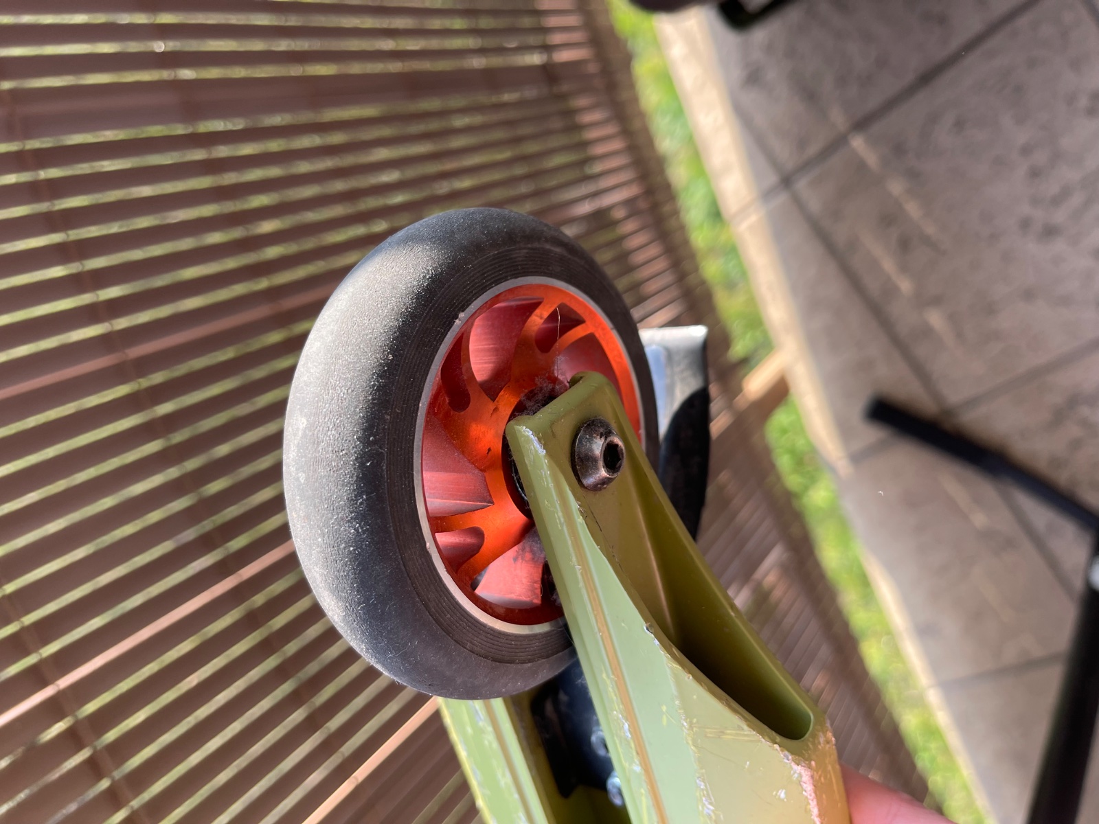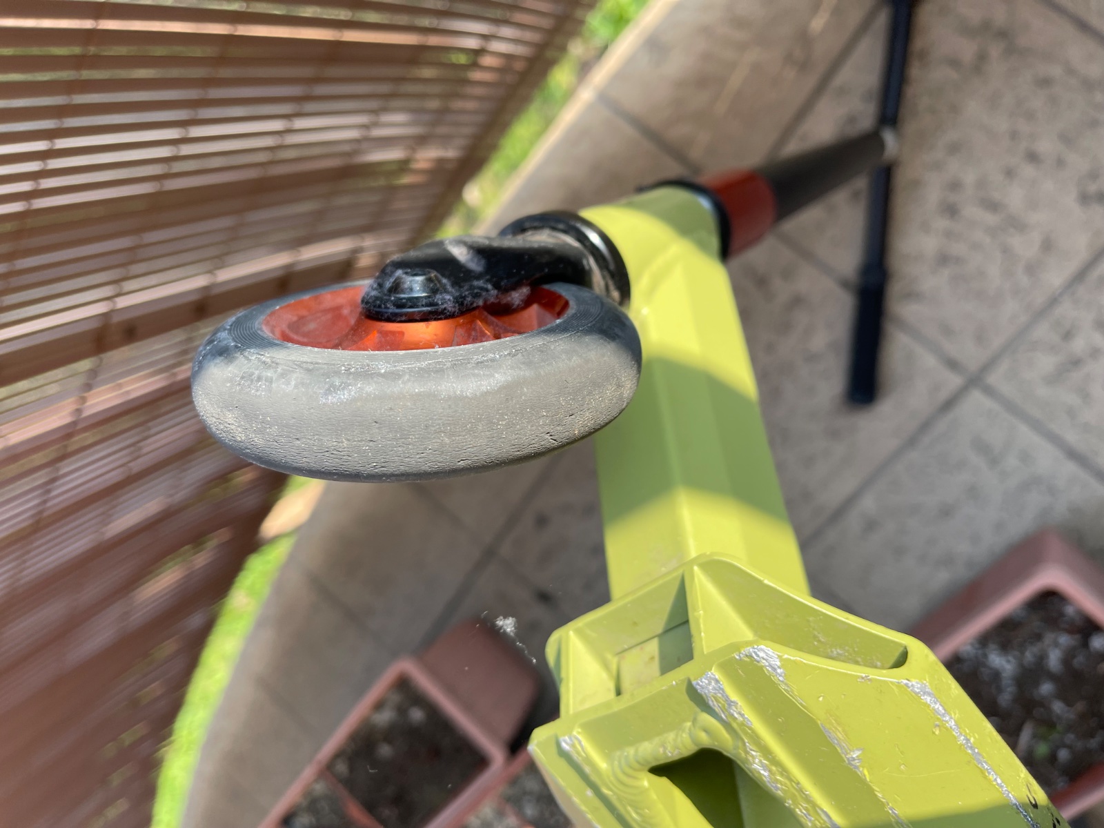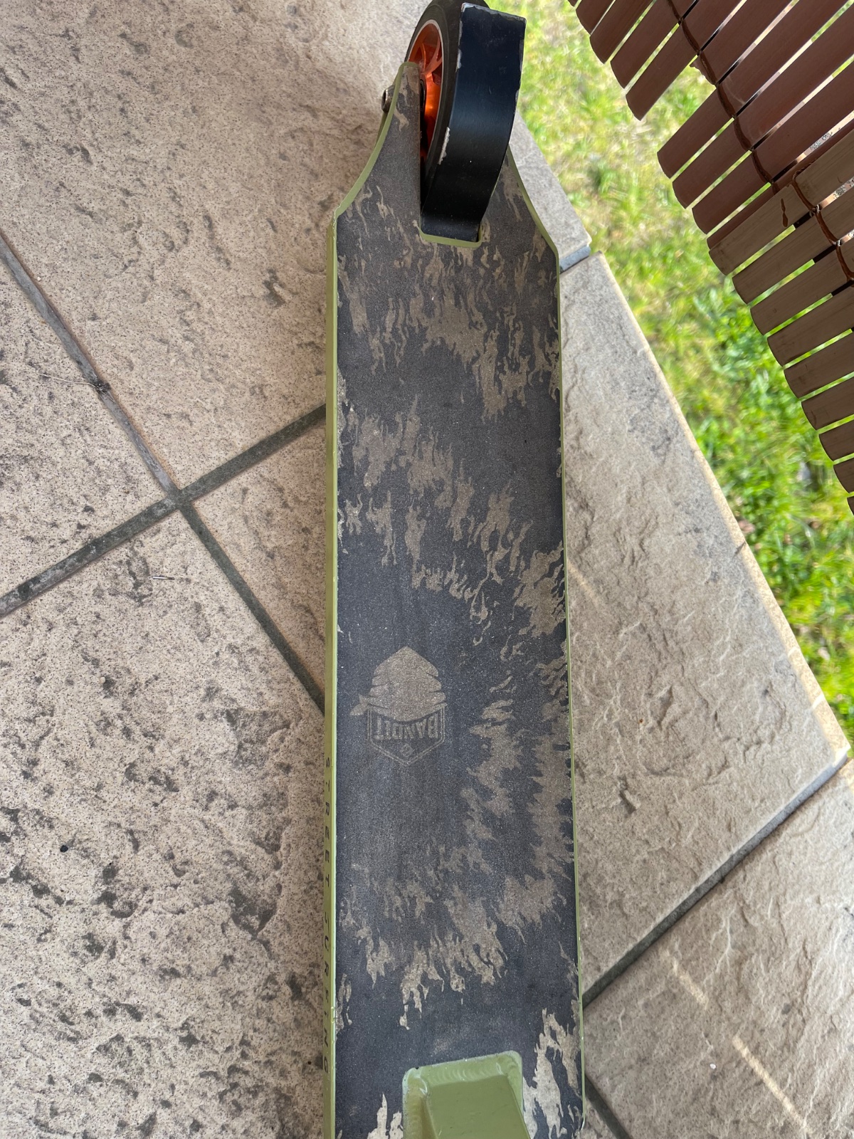 Kolobežka je málo používaná ale má pár odrenín. Kupovaná je v Exi športe za cca 80€. Výška od zeme po volant je cca 80cm a dľzky spodnej časti je cca 50cm.