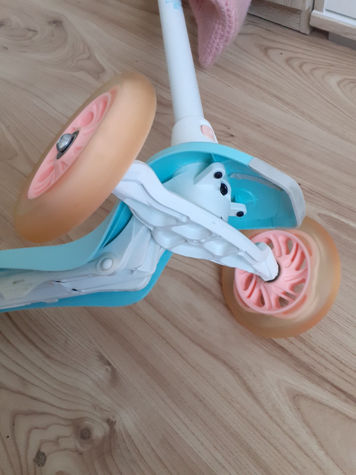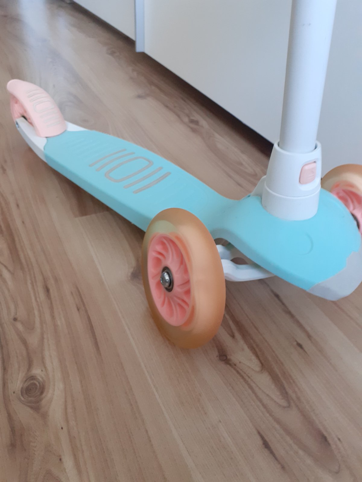 Predam trojkolesovu kolobezku oxelo, predne kolesa svietia, zadna brzda. Vo vybornom stave, malo jazdena, rychlo sme z nej vyrastli , chyby nafotene.