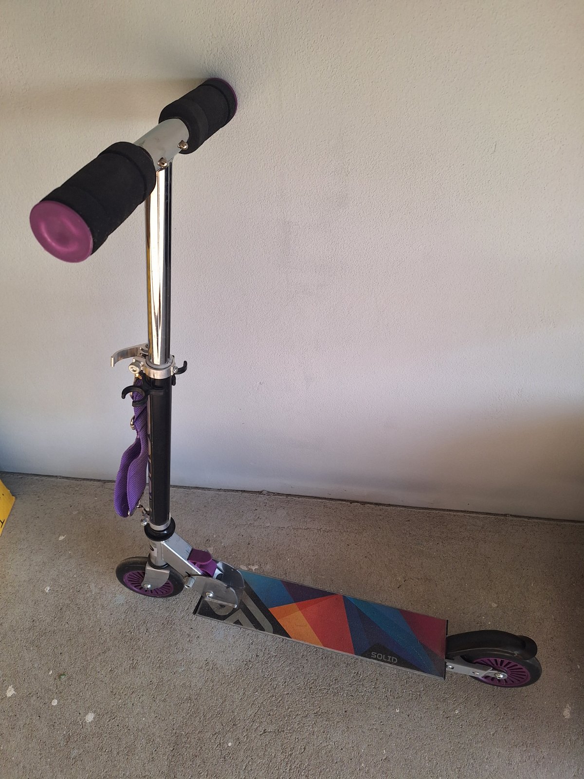 Predám veľmi malo pouzivanu kolobezku, bez poskodeni este aj s povodnou krabicou. Kolieska 12mm, vyska 79cm, nosnost 50kg, siroke protismykavo stupadlo 40x10cm, makke riaditka, zadna brzda, popruh na nosenie, vaha 2,4kg.