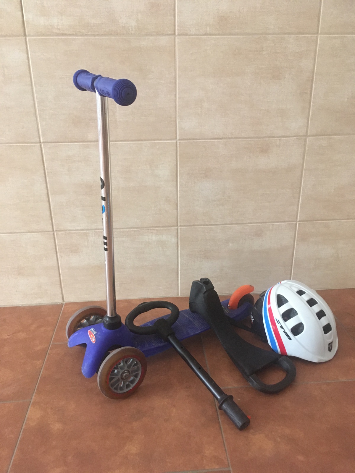 Perfektna a kvalitna kolobezka svajciarskej vyroby mini micro. Pouzivana ale vo velmi dobrom stave. Pouzitelna od 1 roka az do vahy 35 kg. Sedatko a kormidlo k tomu v cene! Maly ju miloval! Prilba v cene!