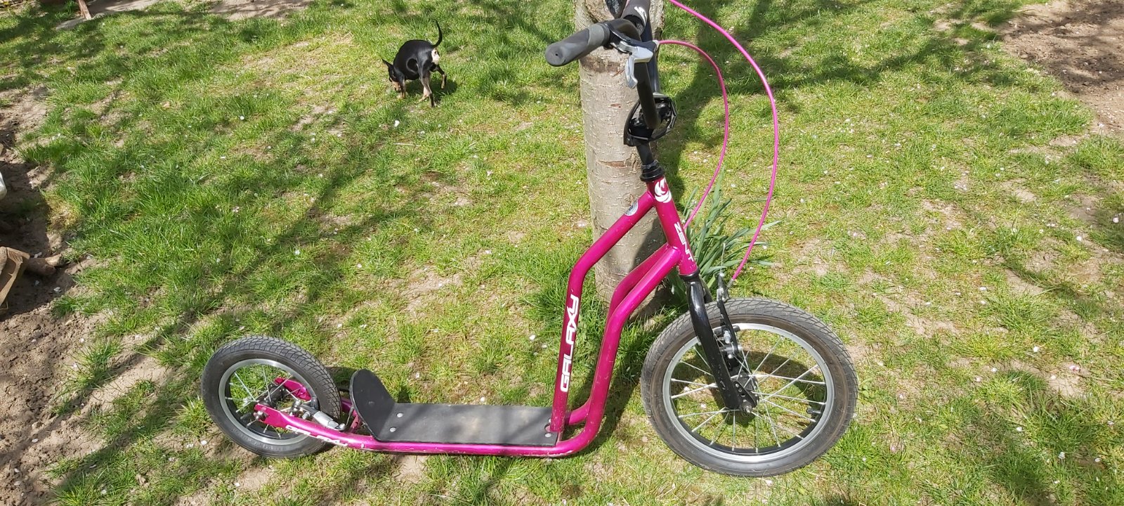 Kvalitná kolobežka pre športové využitie, 16" predné a 12" zadné nafukovacie koleso