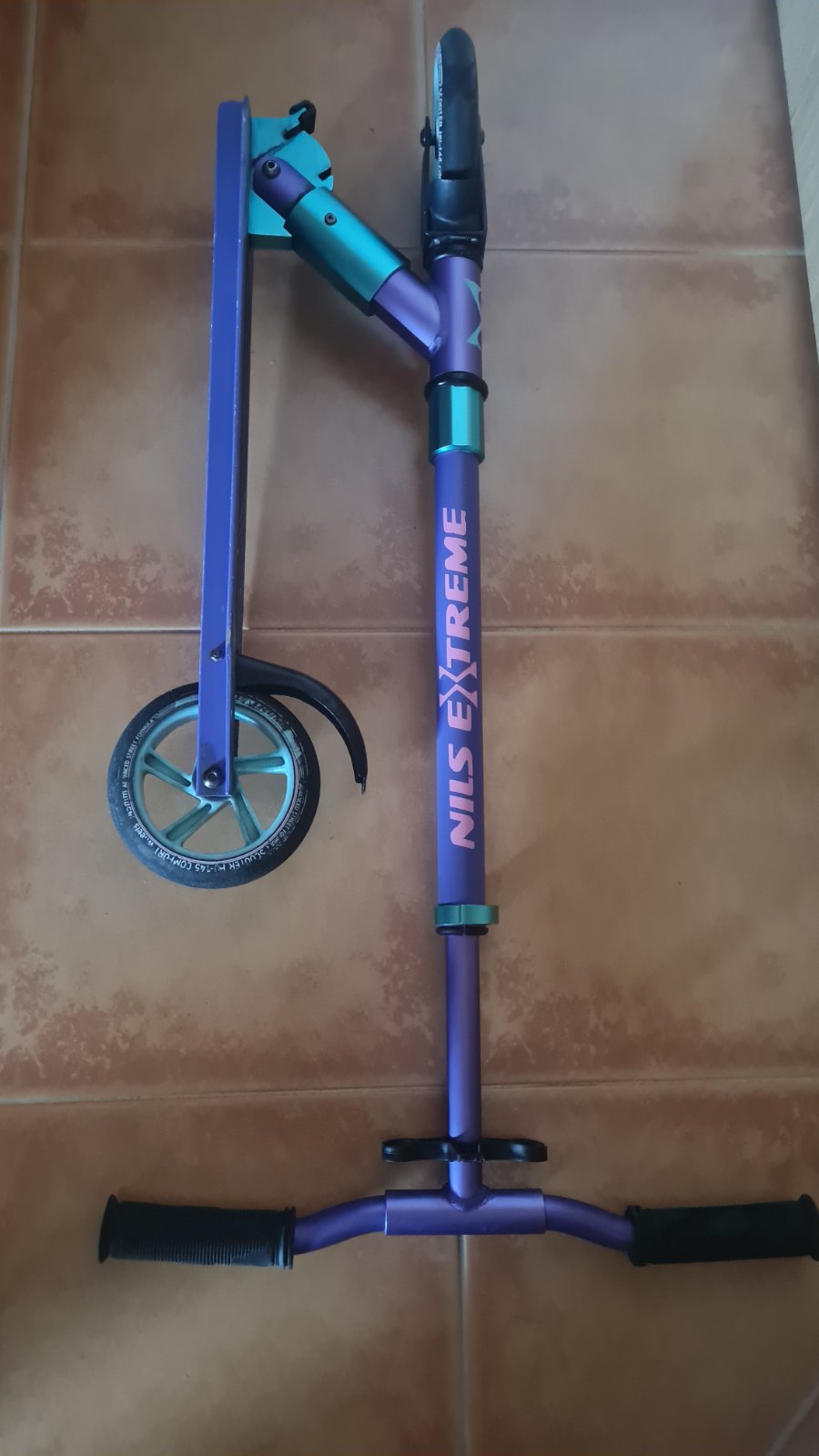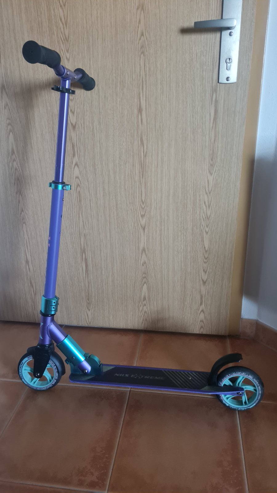 len párkrát použitá Kolobežka NILS Extreme HM205 je vhodná pre deti aj dospelých. Charakteristikou modelu HM205 sú široké riadidlá a výklopný stojan. Skladacia hliníková konštrukcia je ľahká, pev...