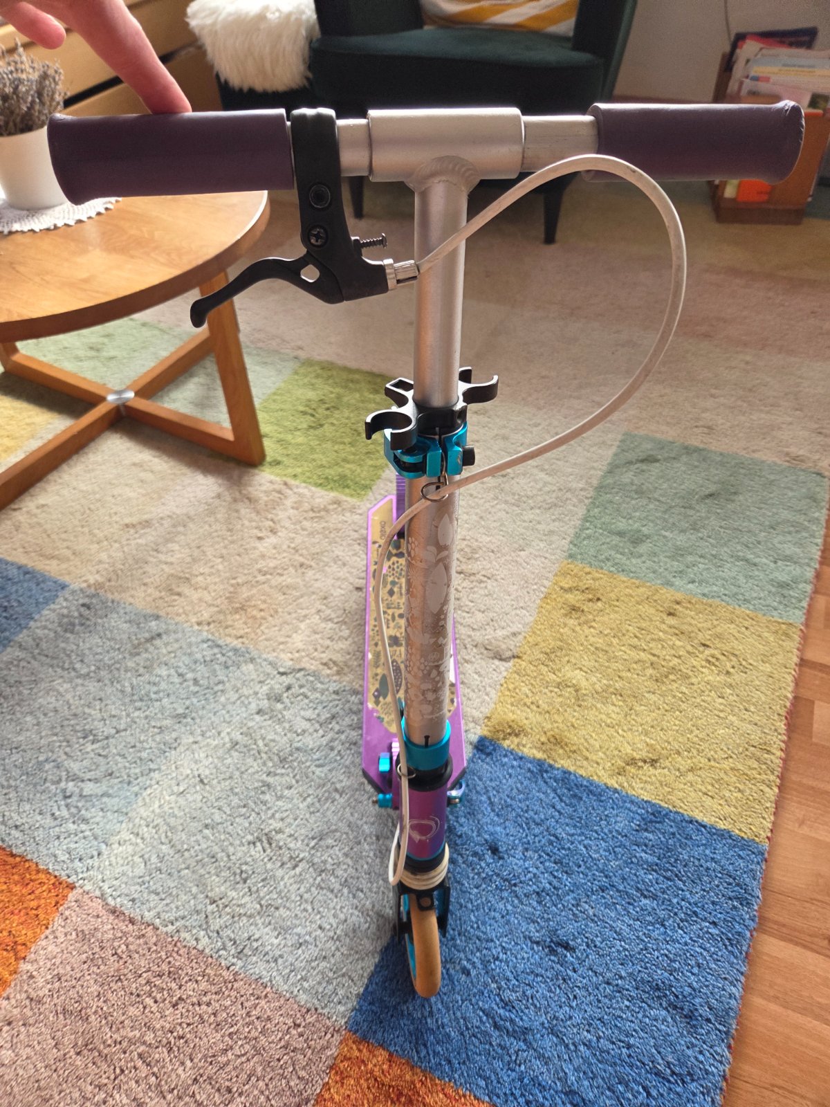 Predám kolobežku používanú jedným dieťaťom zhruba 2 roky. Funkčne je všetko v poriadku, problém s ňou nikdy nebol, mame dve tohto modelu a obe spoľahlivé.