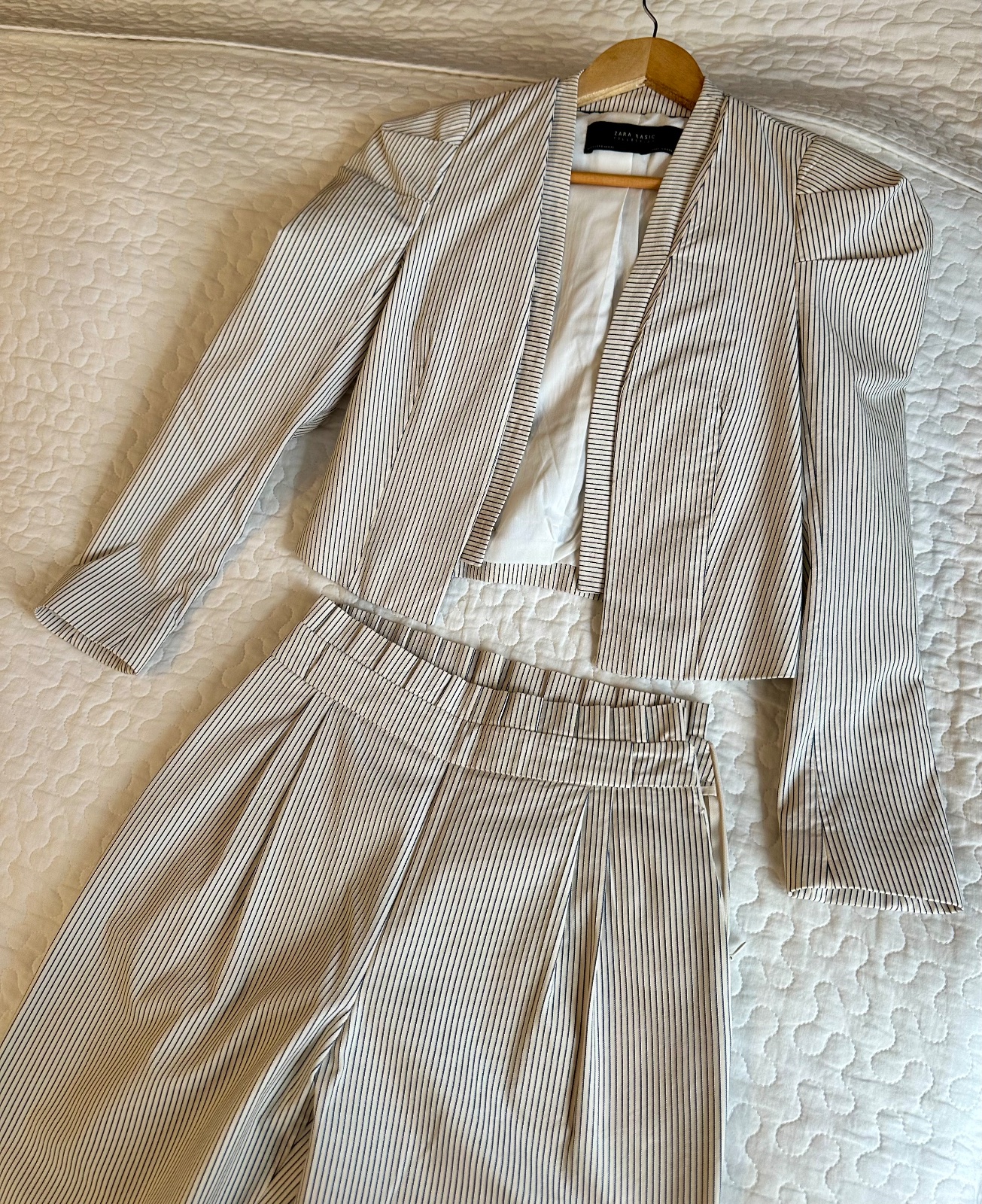 Krásny komplet zara, nohavice zapínanie na boku zips a sako netypickê, krasny strih vsetko. Nenosené, top stavá