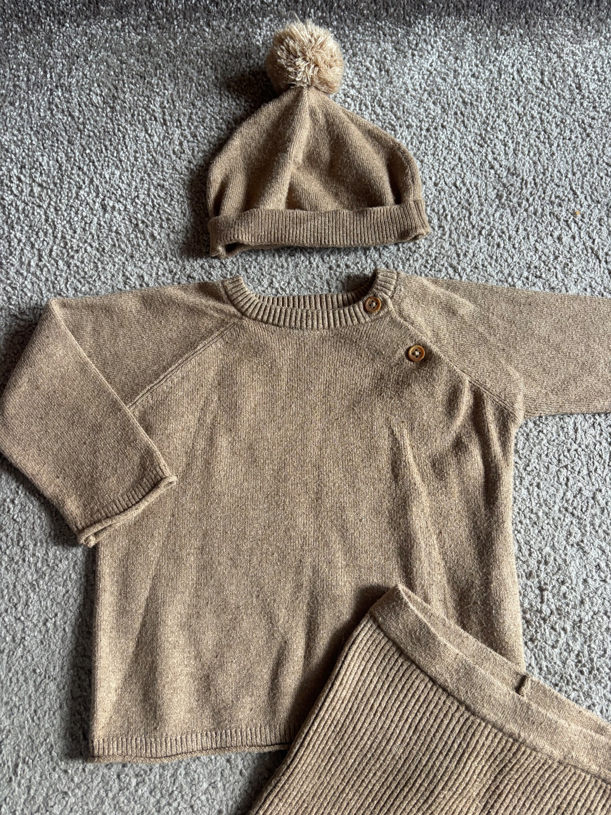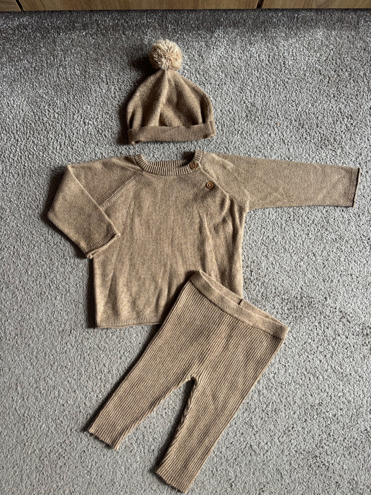 Komplet - legínky, svetrík a čiapočka , oblečené párkrát , v top stave , veľkosť 6-9mesiacov. Cena 7€