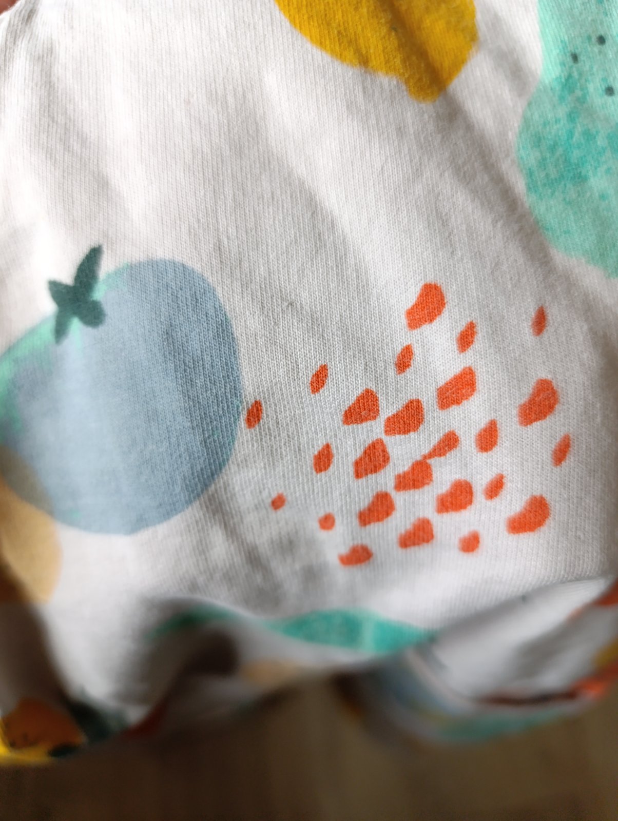 Súprava nosená, body bez poškodení, trakače majú nedostatky viď foto. Veľkosť písaná 86 ale nosili sme ako 74/80.