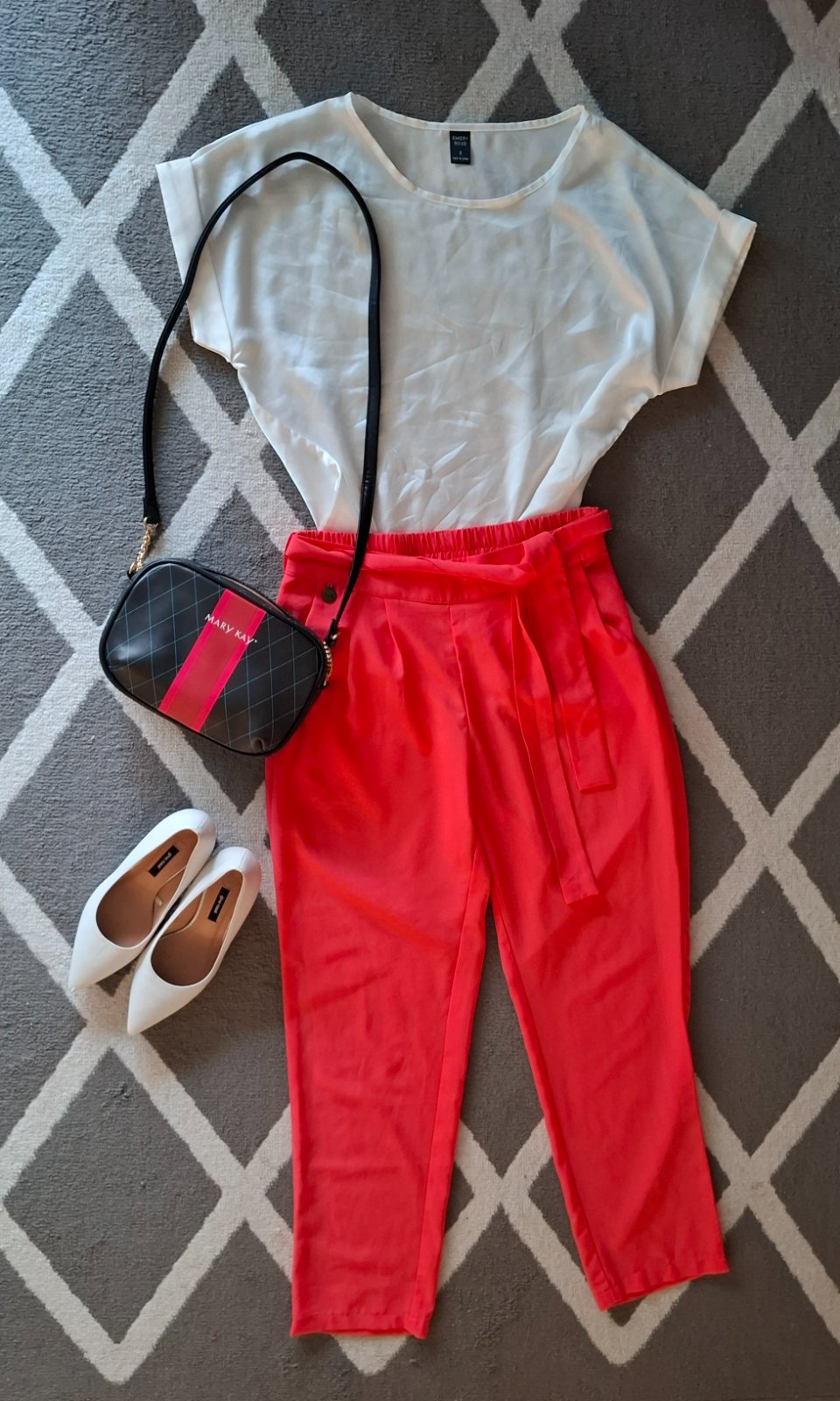 Letné nohavice smash!Blúzka Emery Rose a grátis kabelka Mary Kay!Všetko super stav!Blúzka a kabelka nepoužitá!Topánky Gino Rossi na požiadavku.