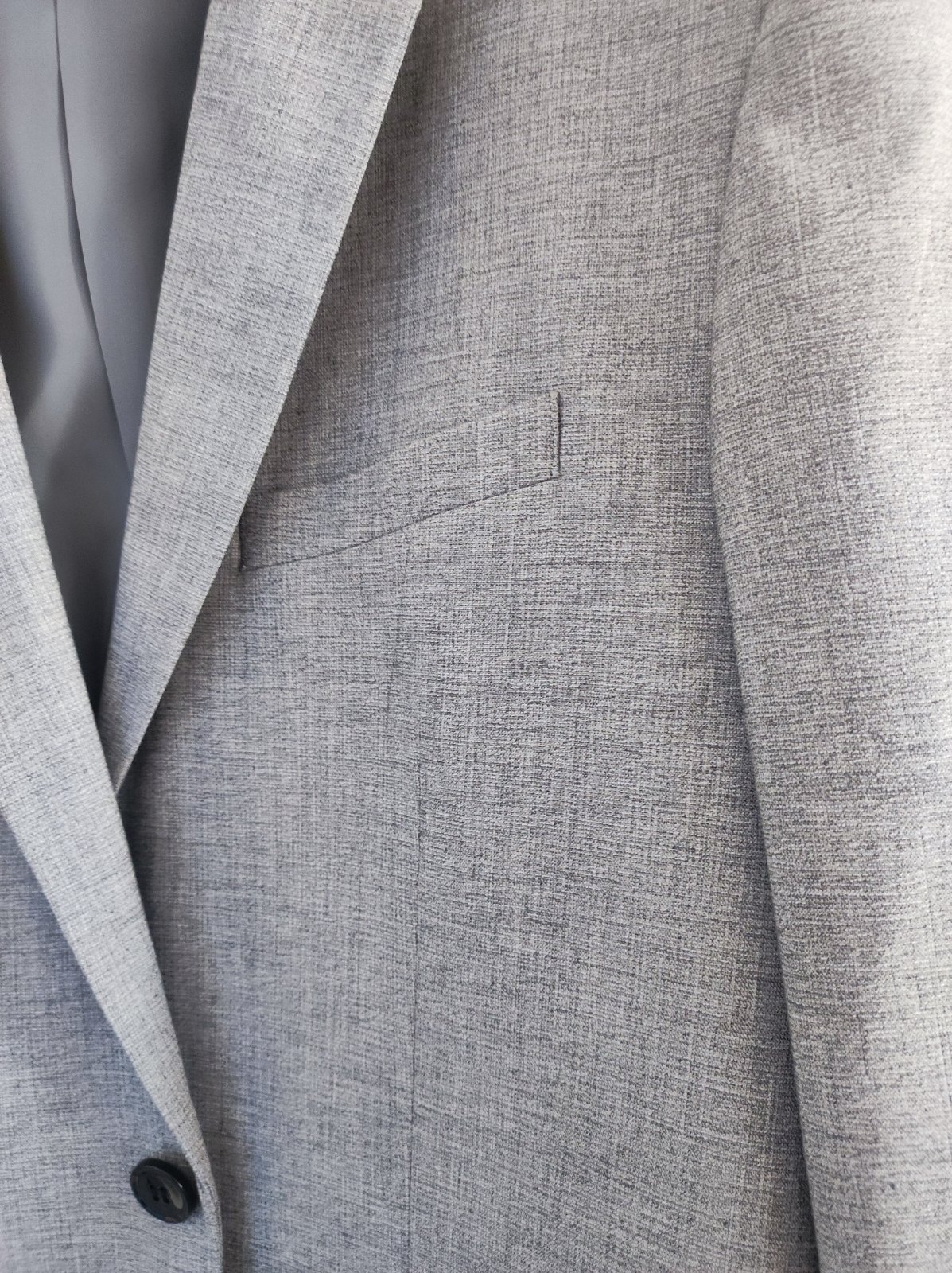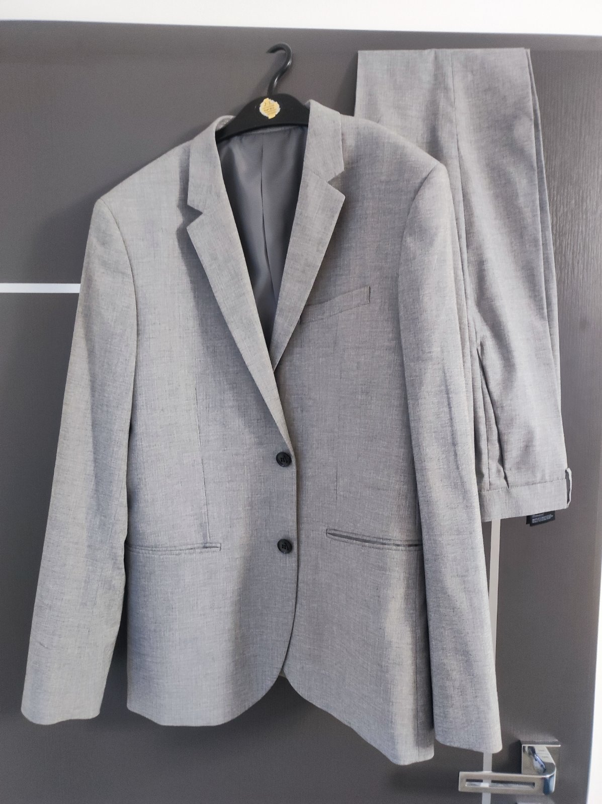 Predám pánsky oblek H&M nosený príležitostne. Sako veľkosť EUR 48, nohavive veľkosť EUR 52. Rozbité gombíky na rukávoch.