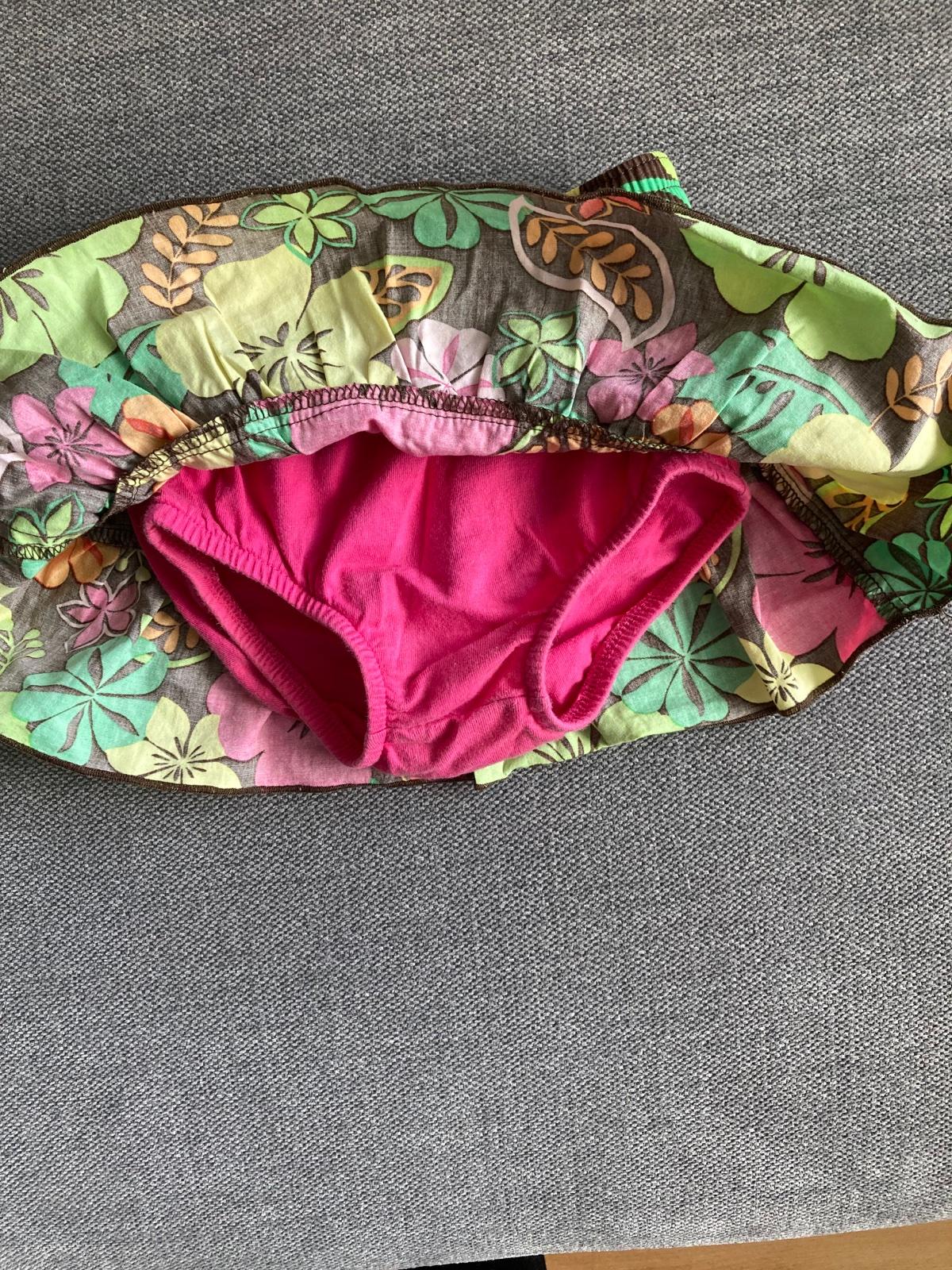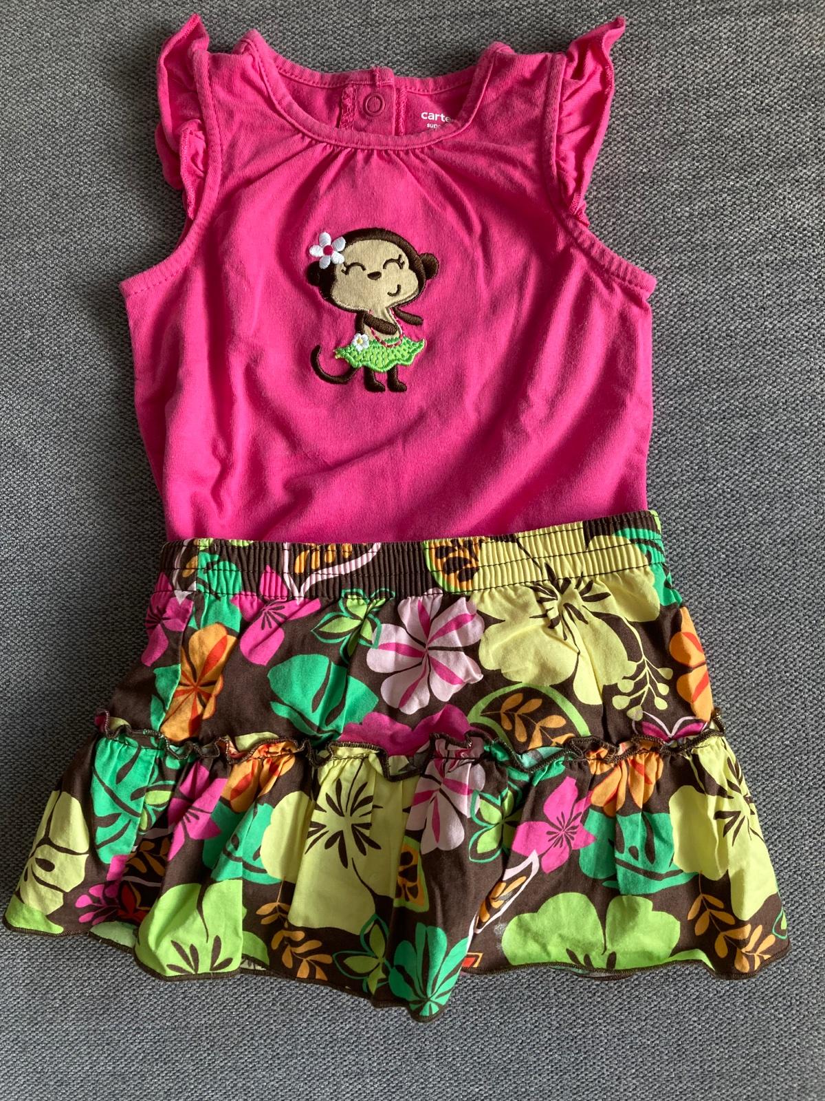 Krásny komplet na leto - tričko a sukňa so všitými nohavičkami, aby zakryli plienku. Kupované v USA, značka Carter ´s, veľkosť 6 mesiacov.