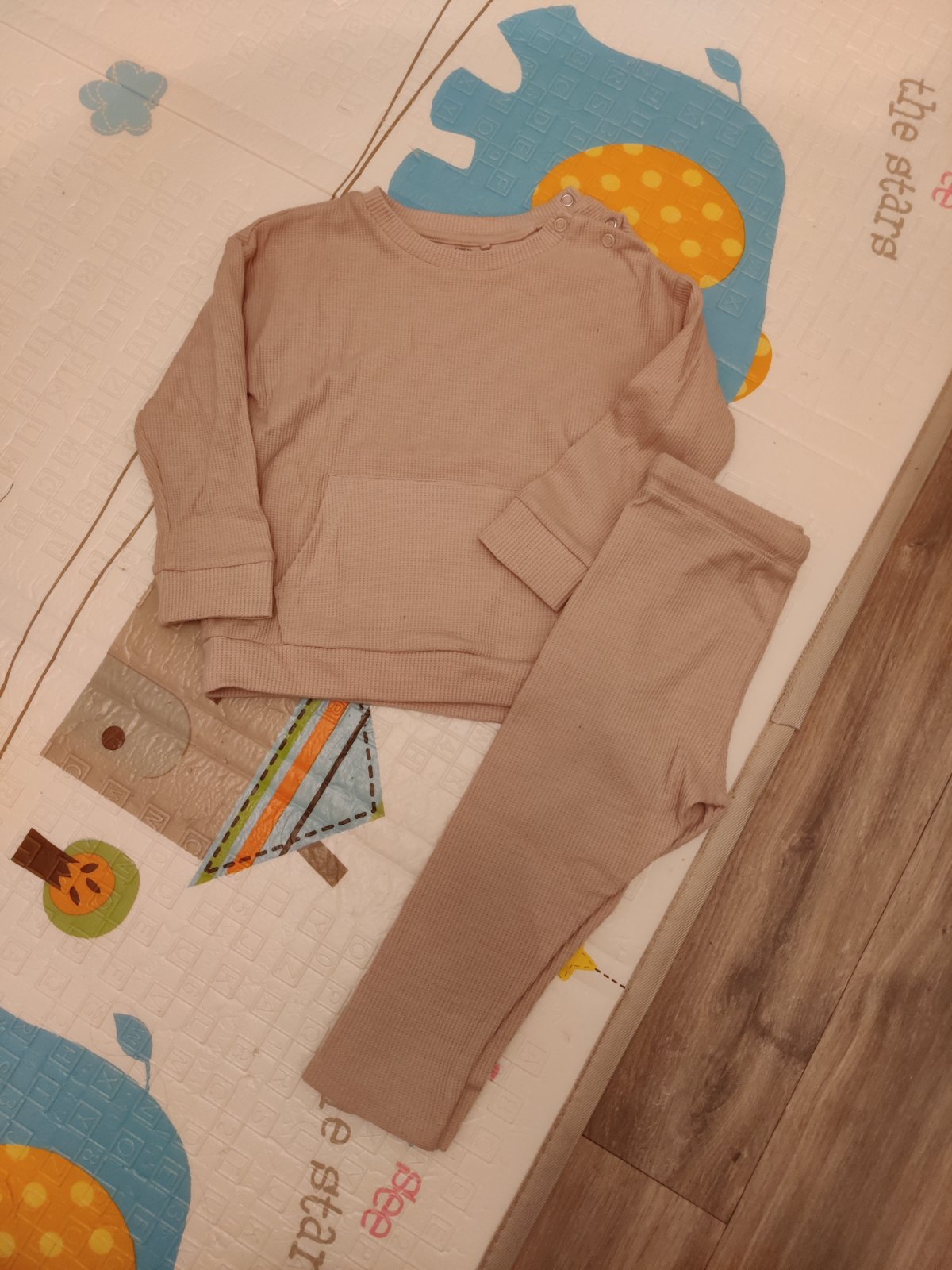 Krásna béžová suprava,vrubkovana,veľkosť 86