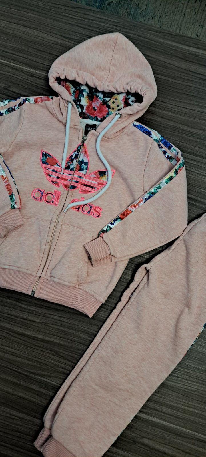 Krásna bavlnená súprava Adidas, nosená doma, stále krásna Veľkosť 110/116 Tepláky plus mikina s kapucňou