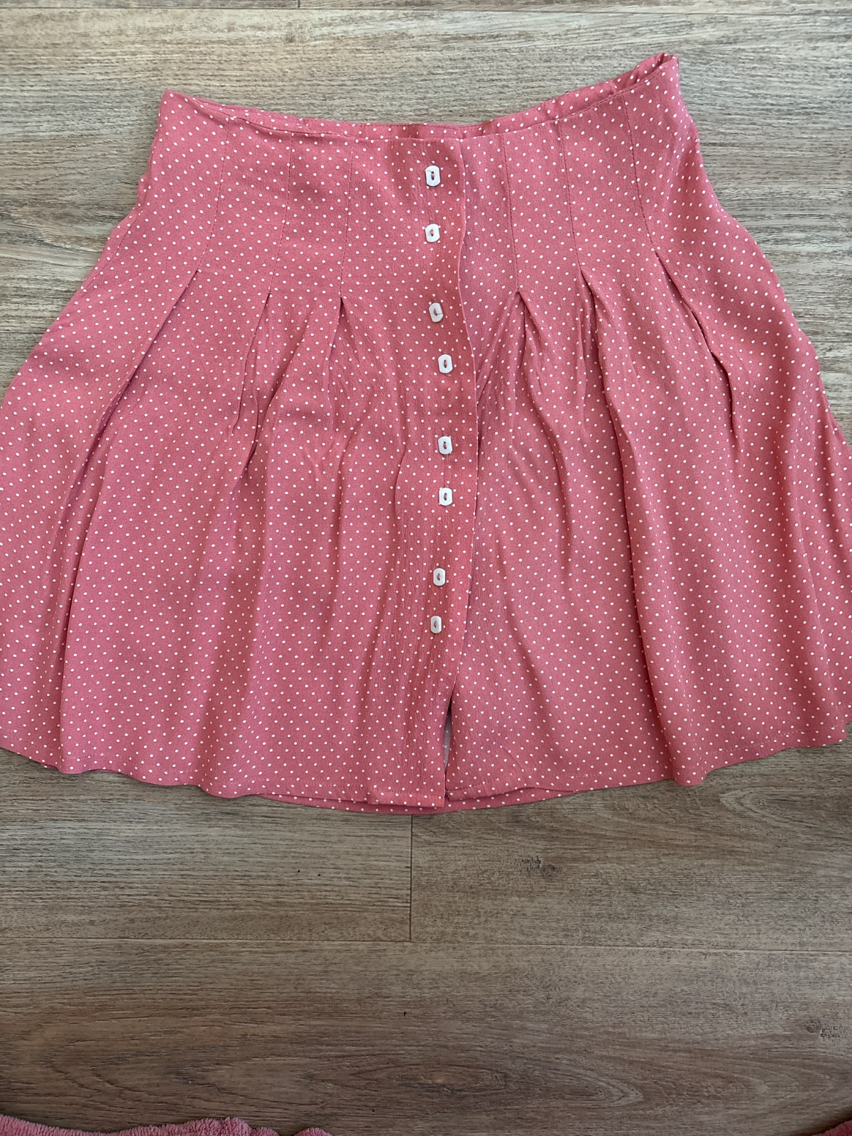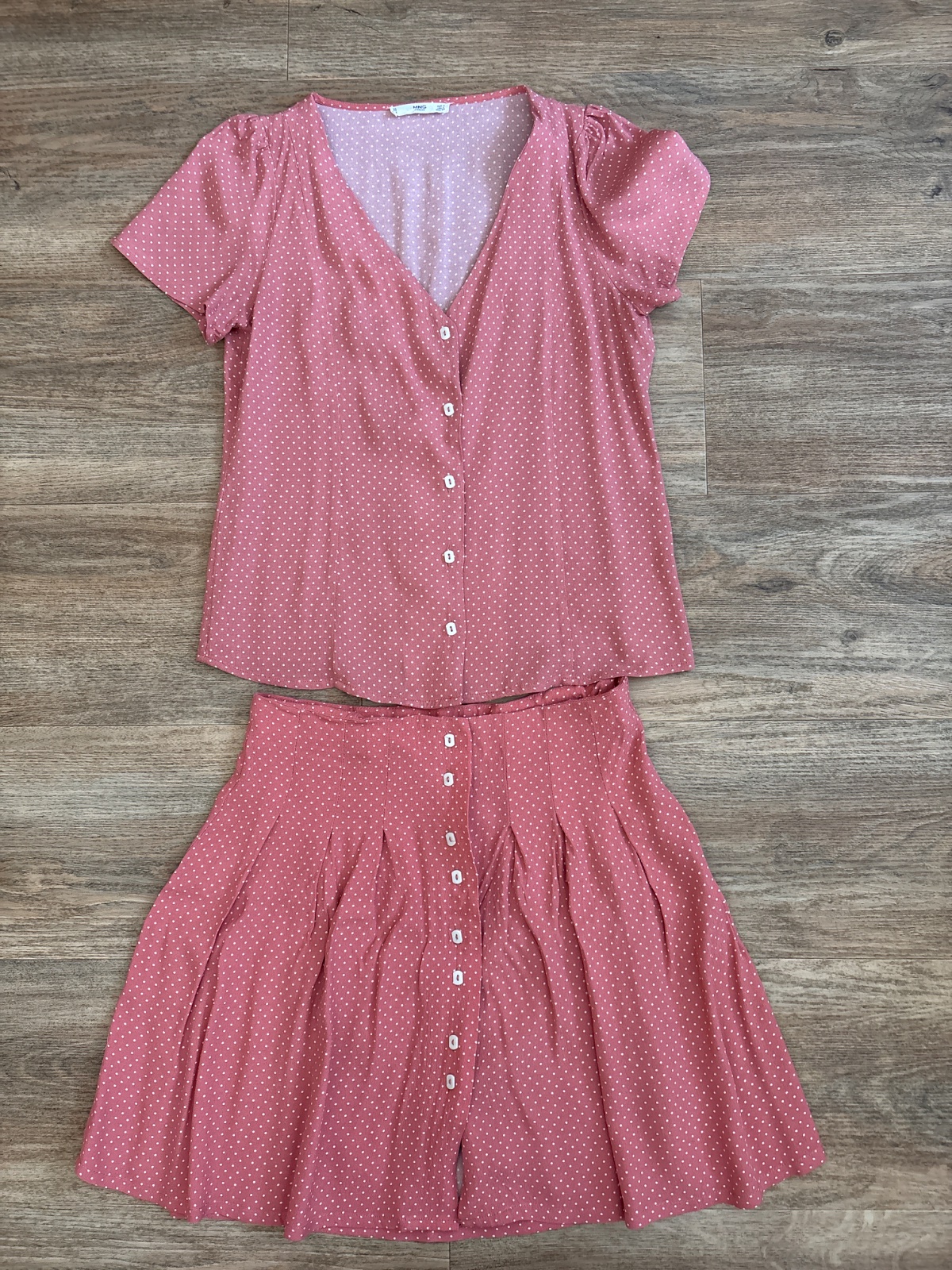Bez poškodení, málo nosené. Bluzka: dĺžka 55, šírka 40, sukna: dĺžka 43, pás 2x34, natiahne sa do 38