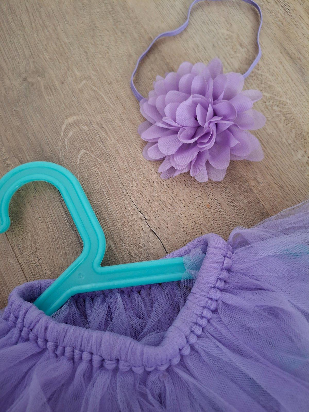 Levanduľová suknička a čelenka pre dieťatko, pás v kľude cca 36 cm, ale tiež sa prispôsobí 4,- eur