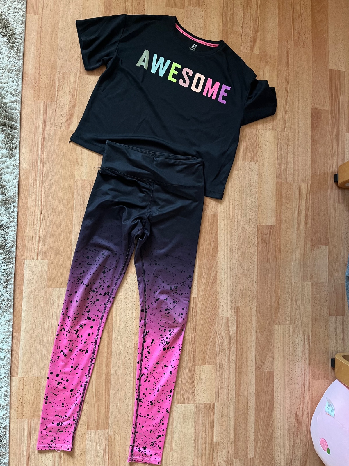 Komplet legíny a tričko, krátke a oversize, v dobrom stave, na leginach už sa povolili nitky, ale nič strašne, nejako sa to ďalej nepara, a na donosenie na doma..vel 12-13r. 158, pripadne ak si vyberiete niečo z bazarika, toto dám grátis len mi treba napísať, že si to prosite..