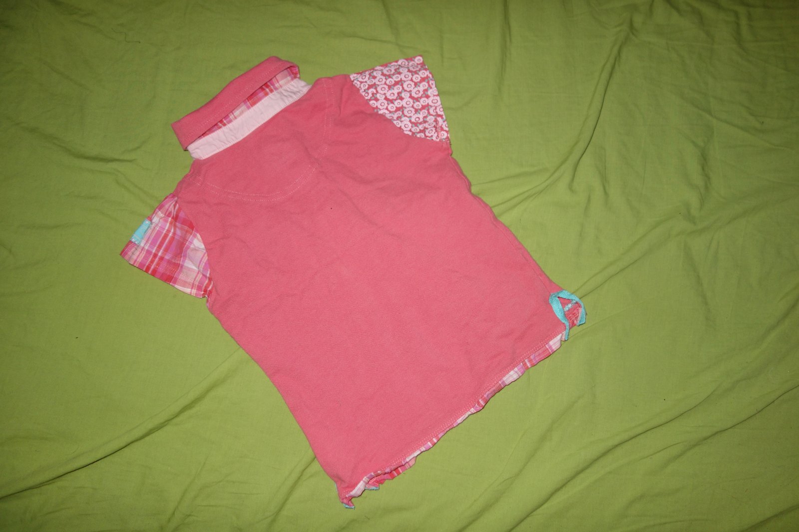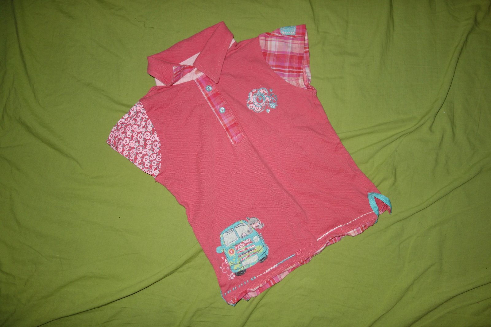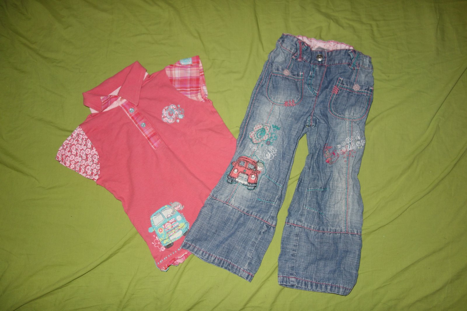 Krasny letny kompletik vo velmi dobrom stave. Pozostava z polo tricka a tenkych roll-up rifliciek.