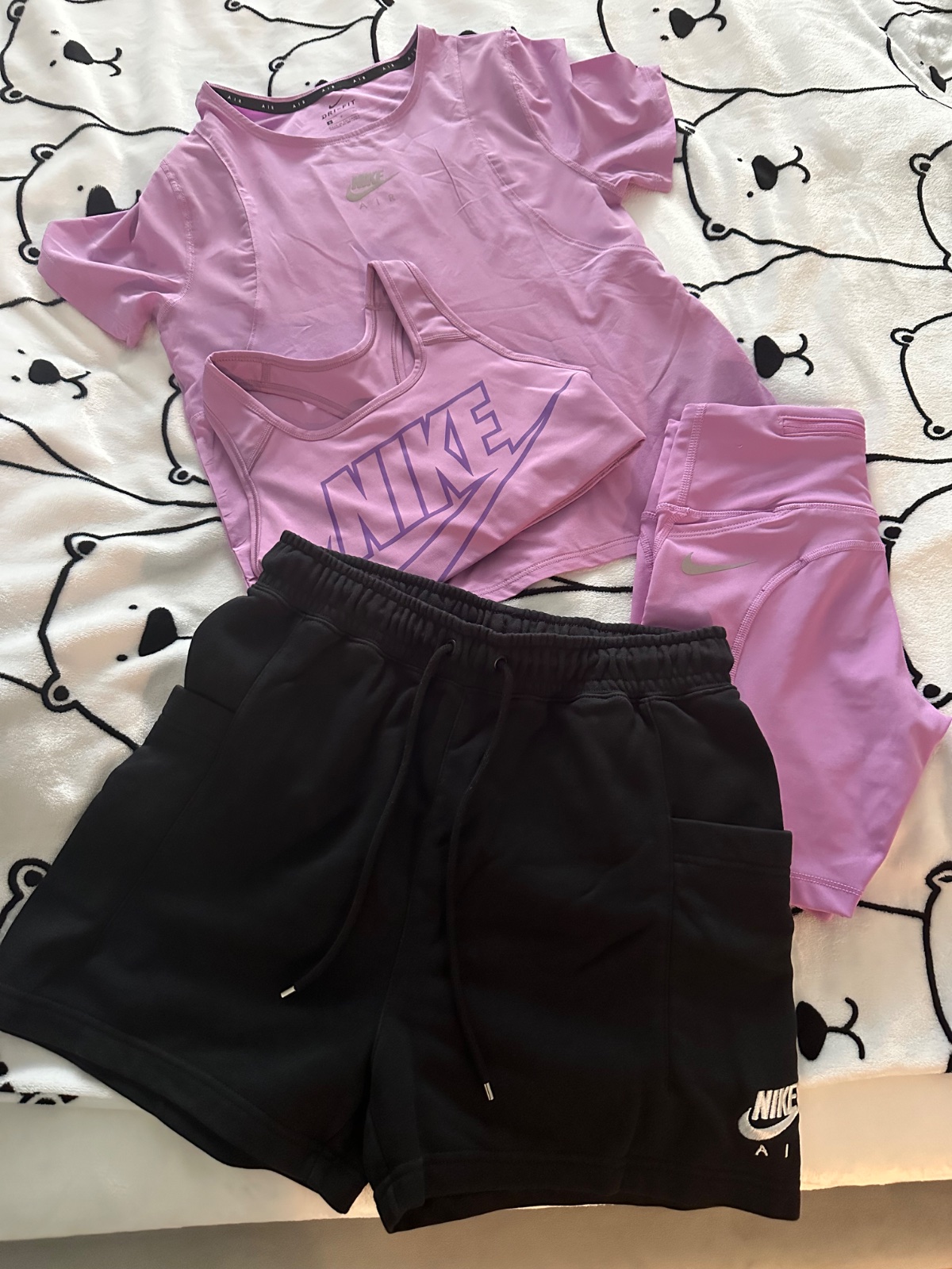 Predam sadu Nike pro fialovej bledej farby velkost Xs a k nim dam sortky cierne Nike.