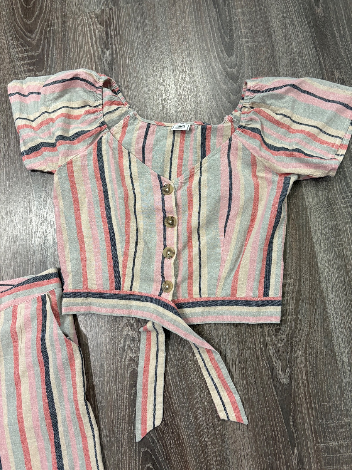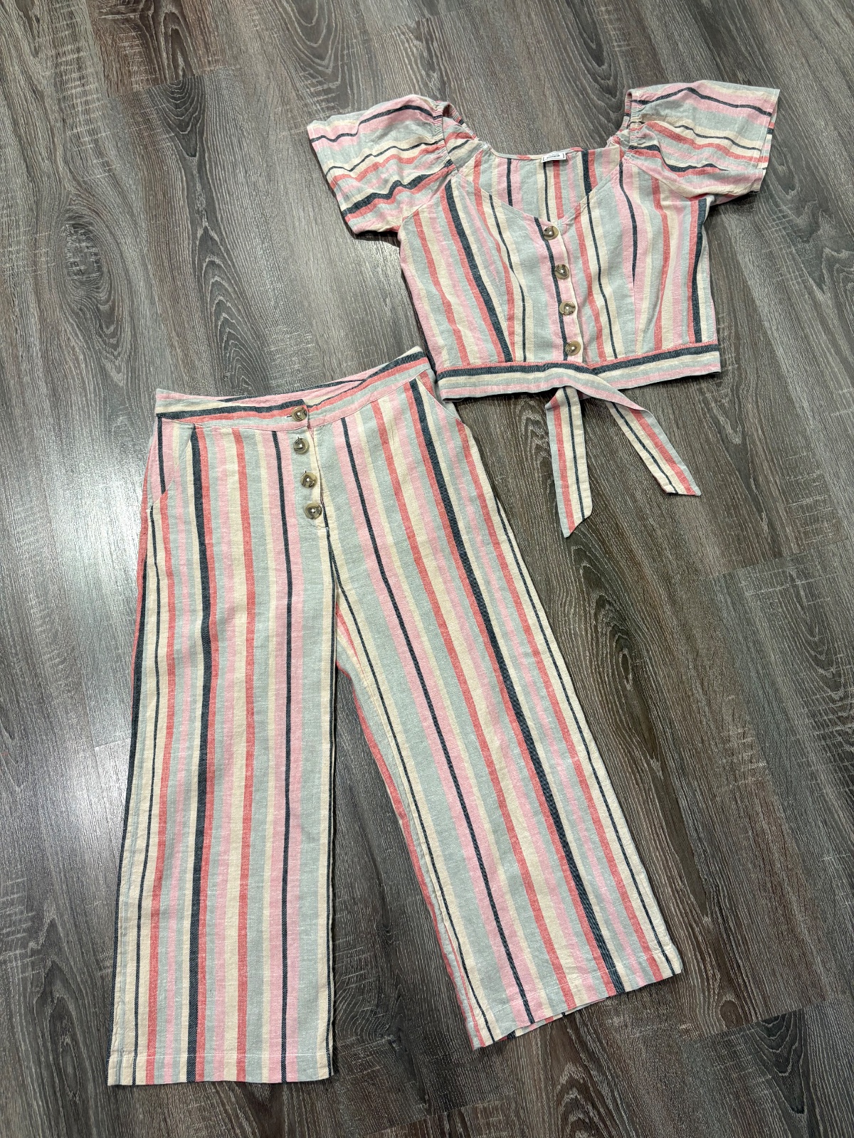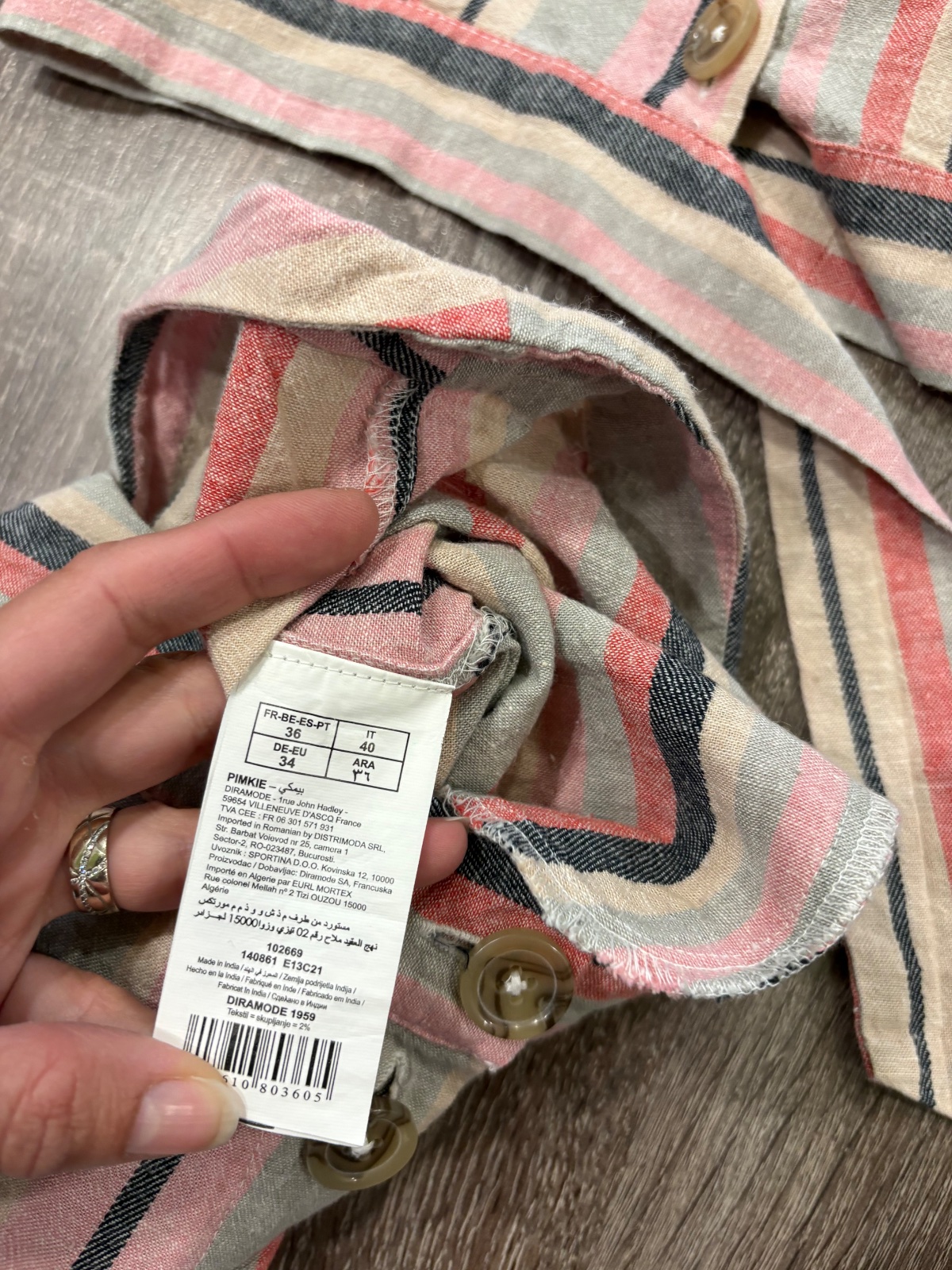 20.Pimkie damsky letny lanovy komplet, krasne letne farby.100% stav,Velkost S,Nohavice su dlhe 81cm (7/8 dlzka)sirka v pase je 38x2cm.predny sed je 27cm,zadny je 34cm.Vech je dlhy 44cm a sirka v podpazusi je cca 44x2cm