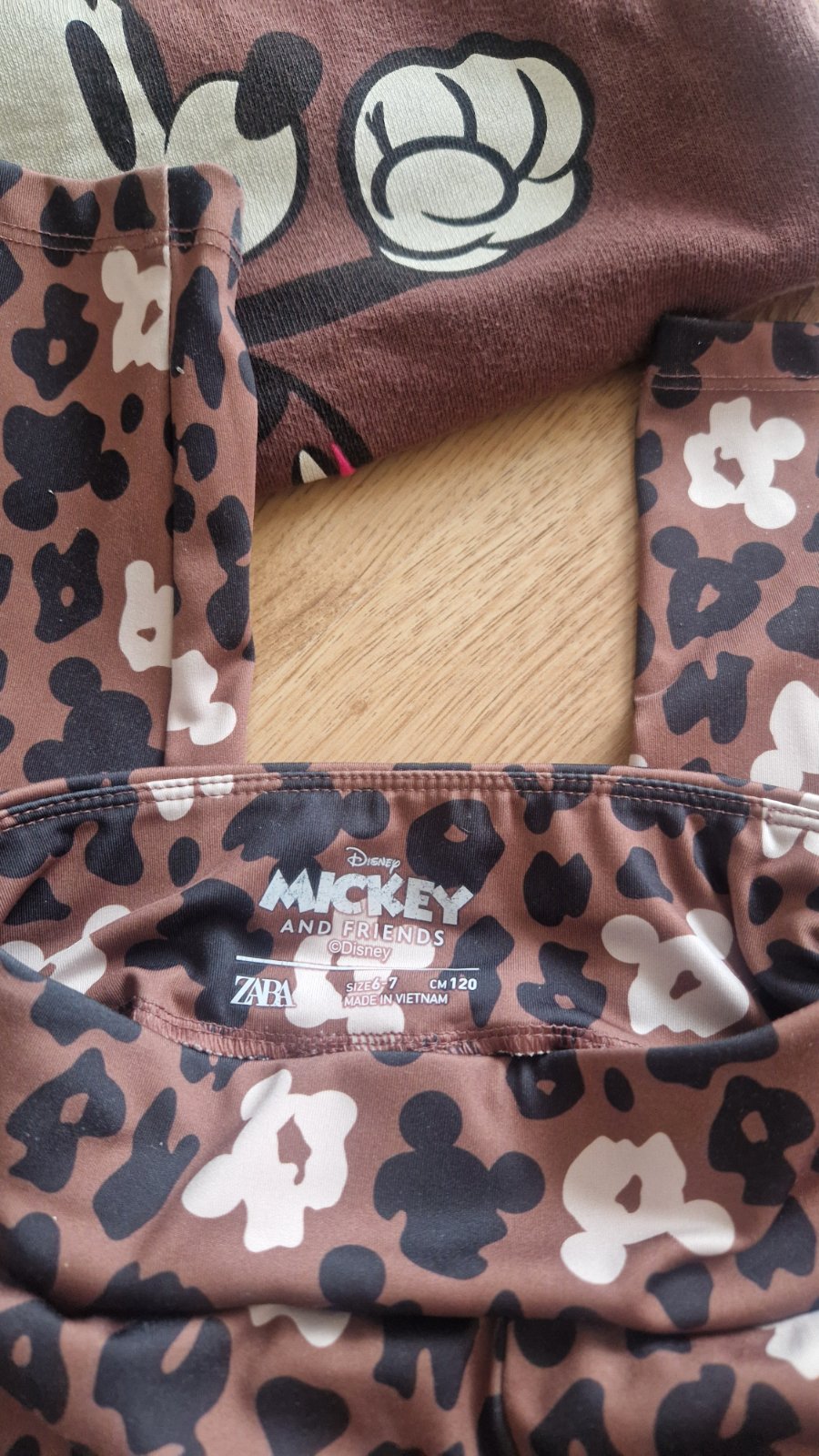 Predam supravu Zara x Mickey, predlzena mikina (velkost 116) + leginy (velkost 120). Mikina TOP stav, leginy boli nosene castejsie, vidiet trosku na kolienkach a na Miske.