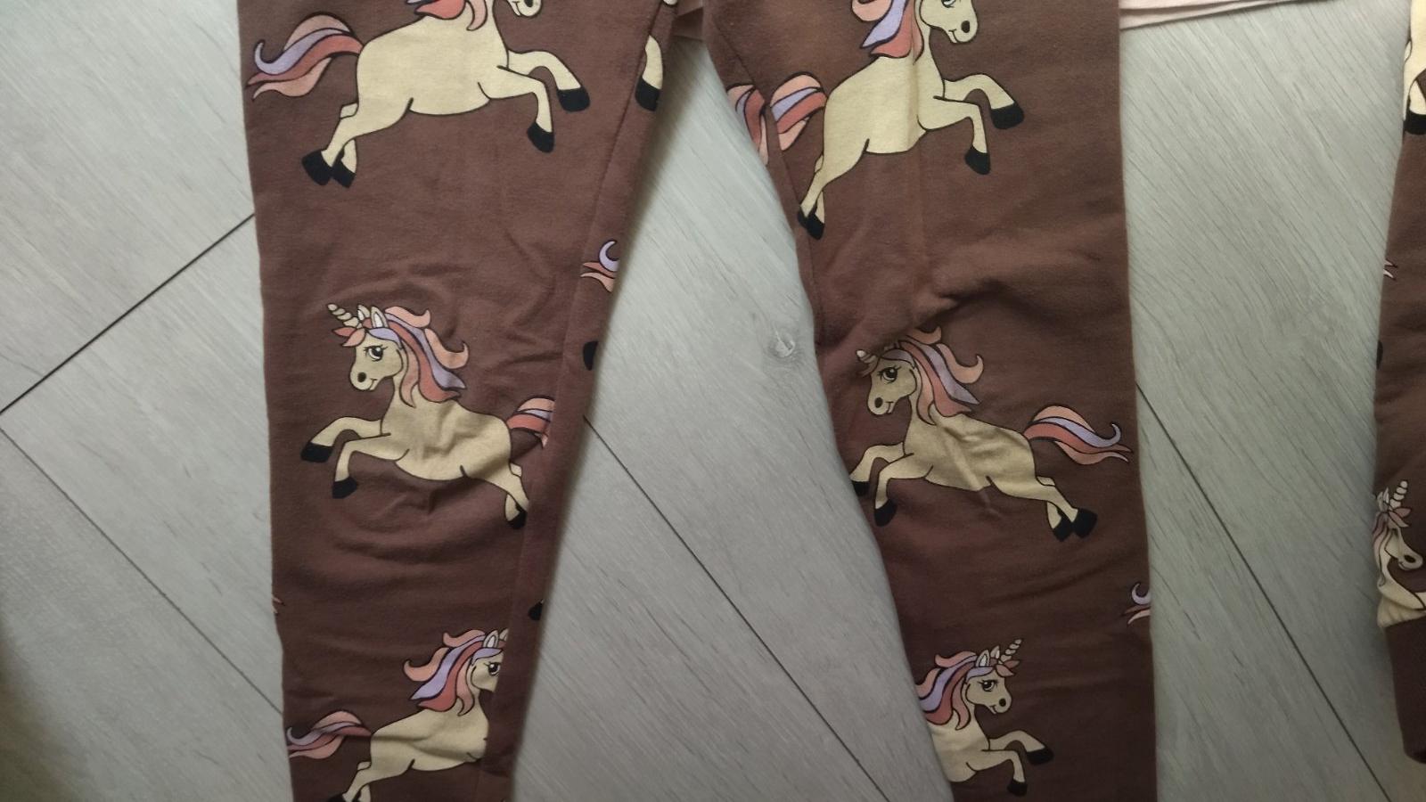 Nosené menej, bez fľakov a dier, len kolienka sú o niečo svetlejšie ale v tom vzore sa to stratí. Legíny sú 122, kupujem väčšie keďže sa vždy skrátia.