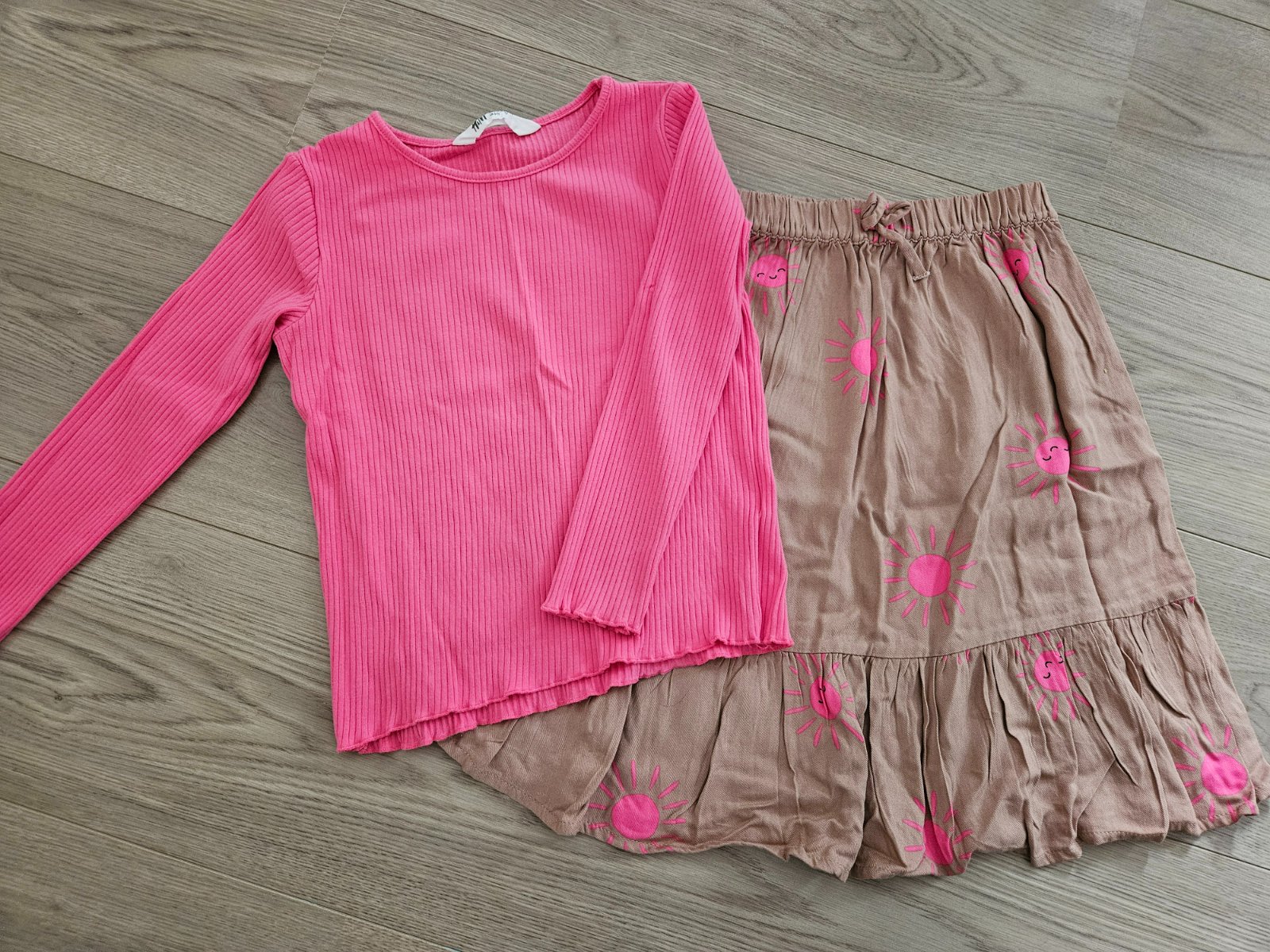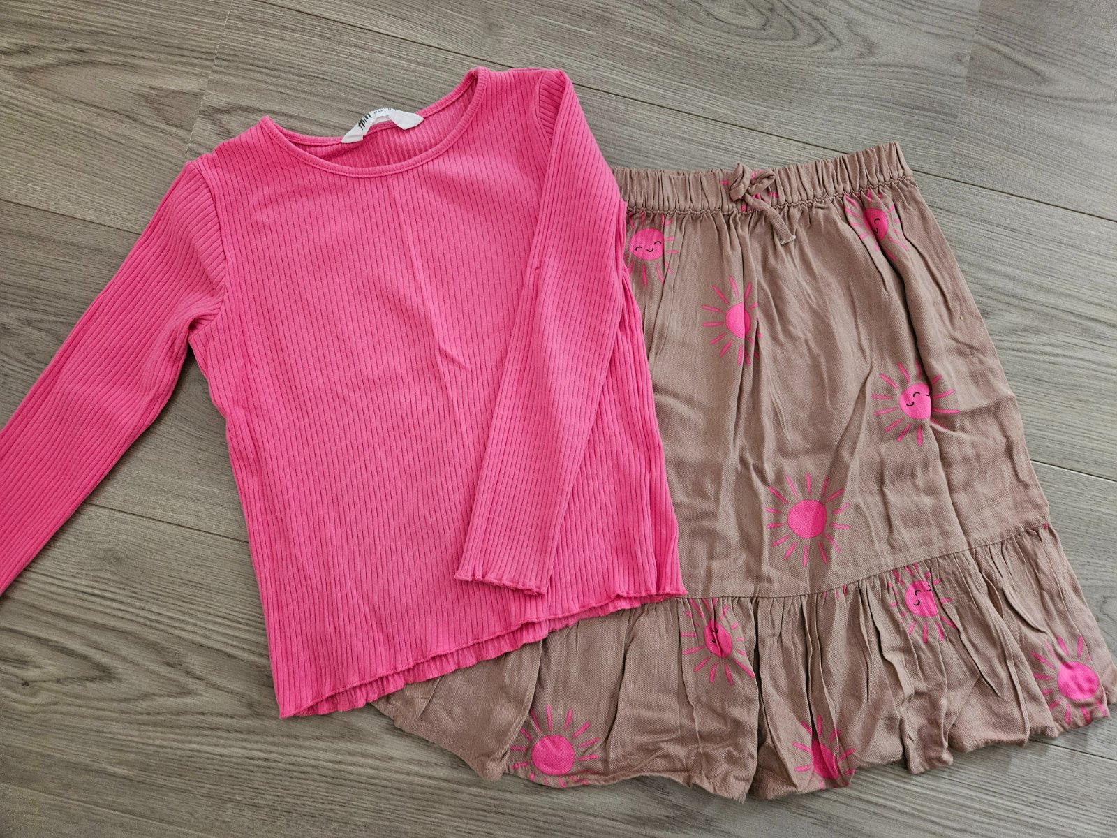 kupovaný nový, pár krát oblečený, fialové tričko iba 1x, veľkosť sedí na 128-134