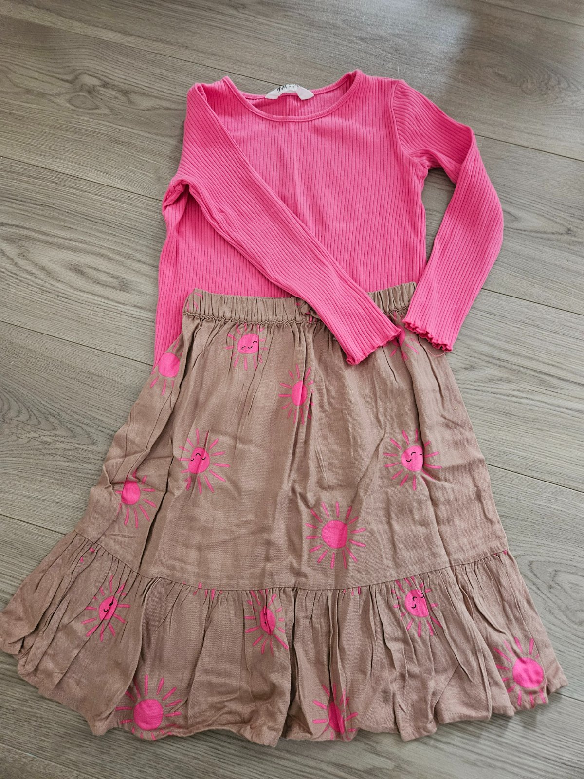 Veľmi pekná súprava širokých legín a mikiny , vrúbkovany materiál Mini zmolky ináč bez poškodenia Pc 25€ Materiál polyester / bavlna / elastan Veľkosť sedí na 7-8 rokov