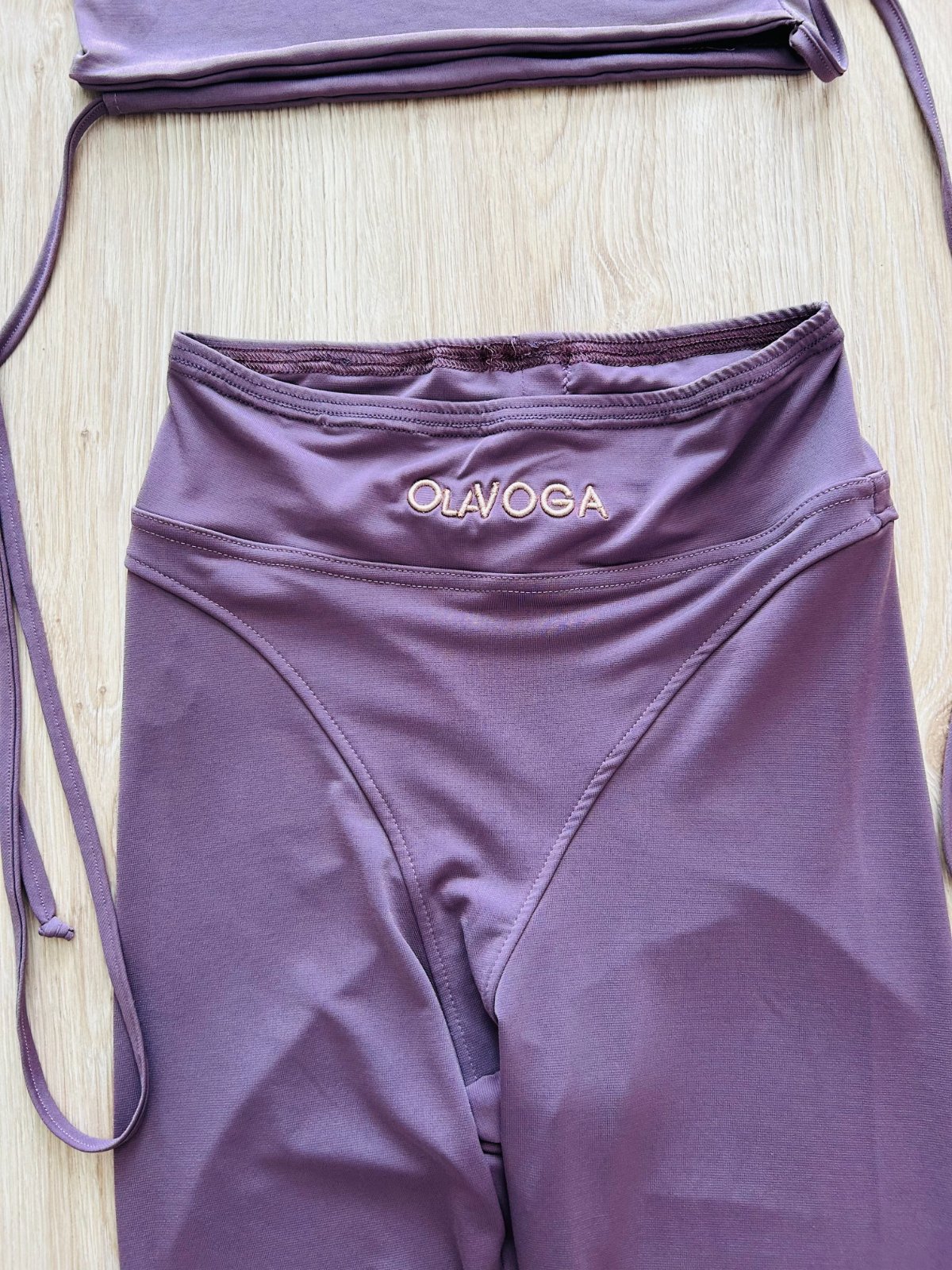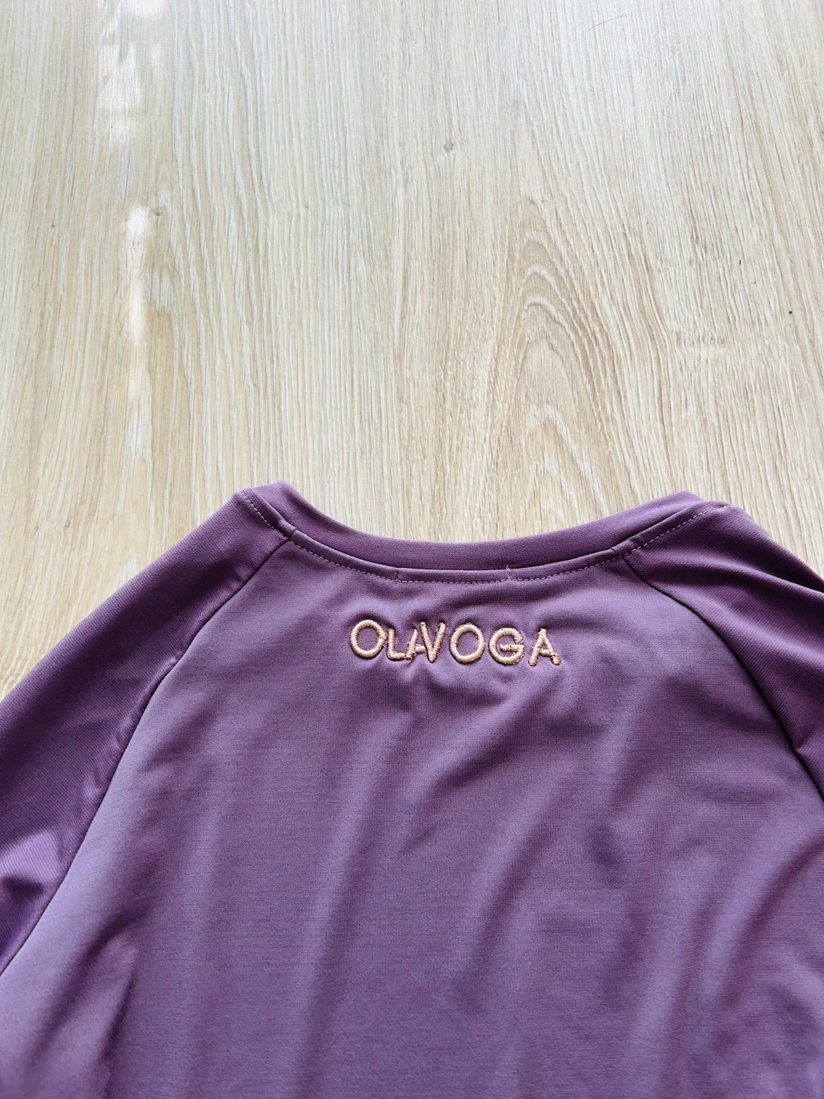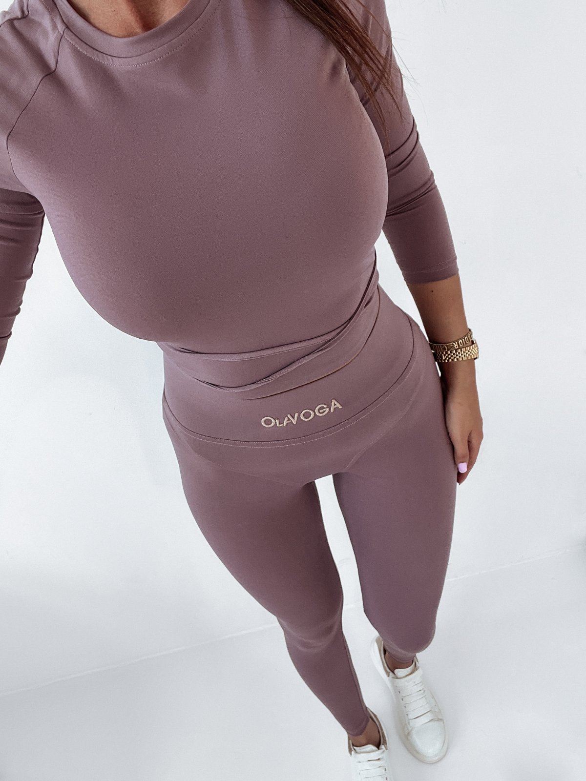 Je to vypasovaná súprava vyrobená z elastického materiálu s bavlneným nádychom. Top je krátkeho strihu s dlhým rukávom a okrúhlym výstrihom, ktorý poskytne pohodlie a krásne zvýrazní vašu postavu. Legíny so zaujímavým prešívaním majú v páse logo s výšivkou značky OlaVoga.