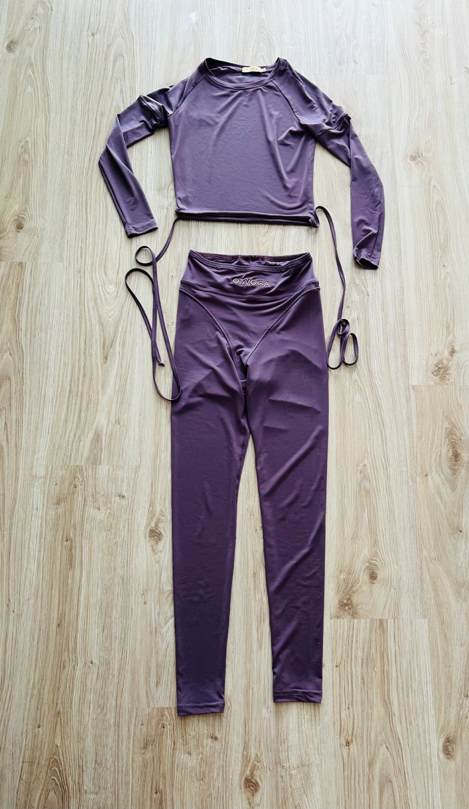 Predám tento krásny komplet poľskej značky OLA VOGA vo veľkosti S. Komplet bol oblečený len 1x. Je v top stave, len z legín som vybrala tesnú gumu, ktorá veľmi tlačila, teraz je to maximálne pohodlné na nosenie, nepadá, ani nikde netlačí, krásne to drží. Zvnútra na páse vidieť šitie, zvonka vôbec nič.