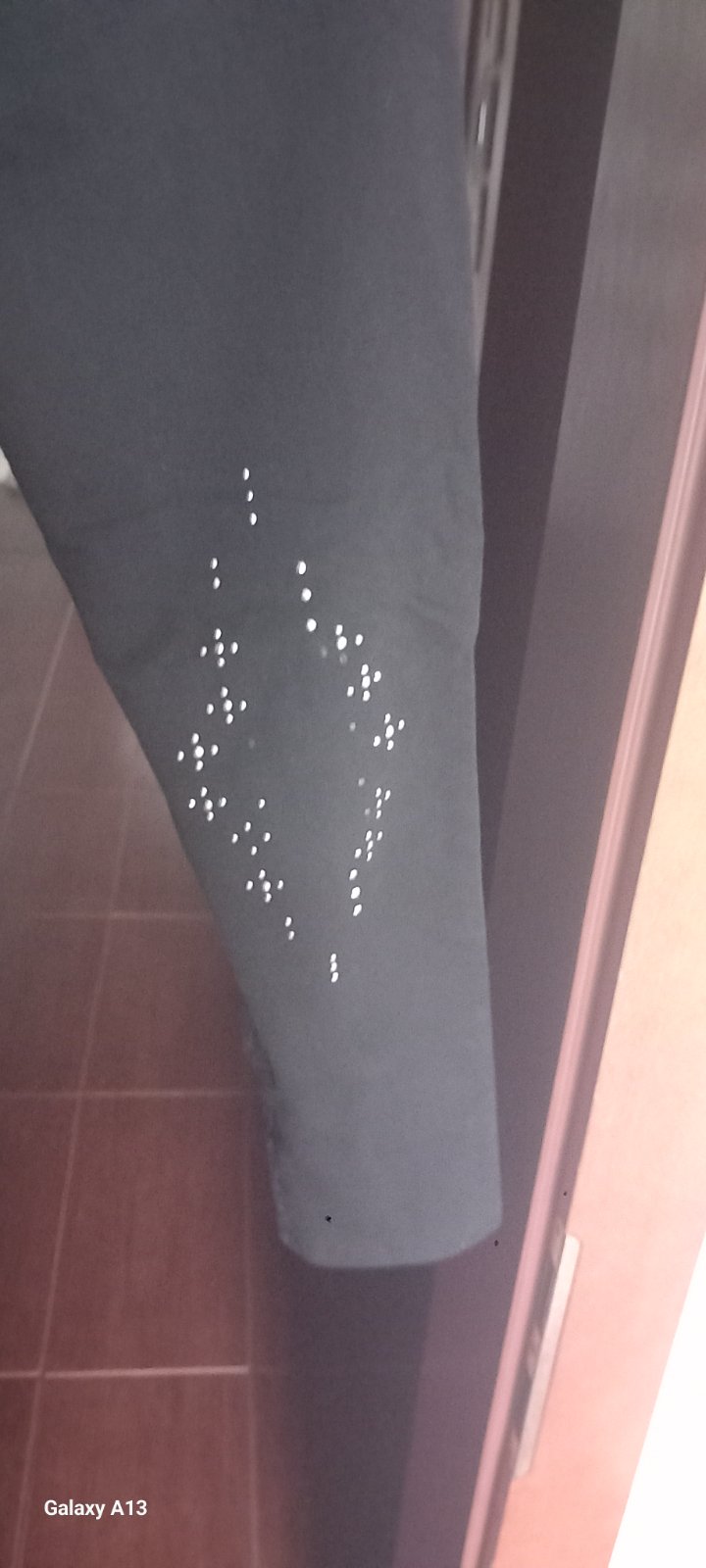 Nosené ale dobrý stav pár kamienkov chyba vid detail ale nič hrozné veľkosť písaná L ale my sme nosili sko S inak veľmi pekné ukaže
