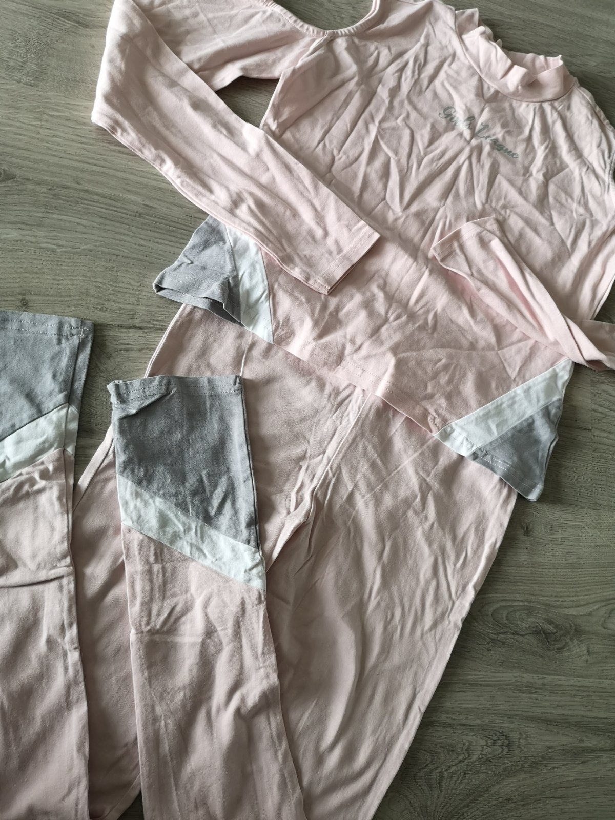 Predám komplet na doma, velkost 158/164. Tričko ma dĺžku 48 cm a sriku po pazuchami 40 cm. Nohavice majú dĺžku 98 cm a šírku v páse 34 cm.
