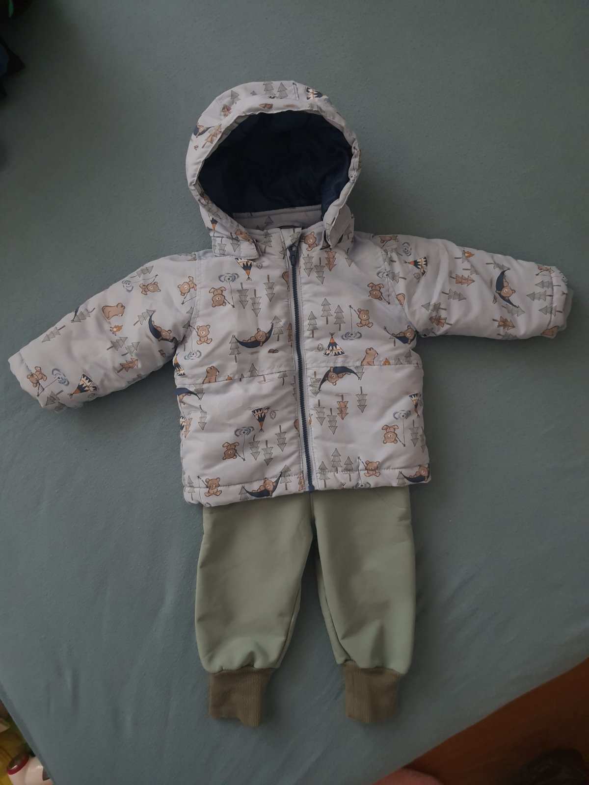 Krásny komplet. Bundička, ako nová. Veľkosť 4 - 6 mesiacov. Na konci rukávov ma patenty, je bledomodrej farby a kapucňa sa dá odnímať. Softshellove nohavice sú handmade. Svetlo limetkovej farby. Veľkosť je rovnaká ako pri bundičke. Podšité. Sú rastúce a tiež bez poškodení, párkrát oblečené. Na živo veľmi pekné. Predám aj po ks. Cena je za komplet. Mám k nemu aj softshellove návleky na nohy. (3€) Handmade. Pozri foto a ďalšie inzeráty.