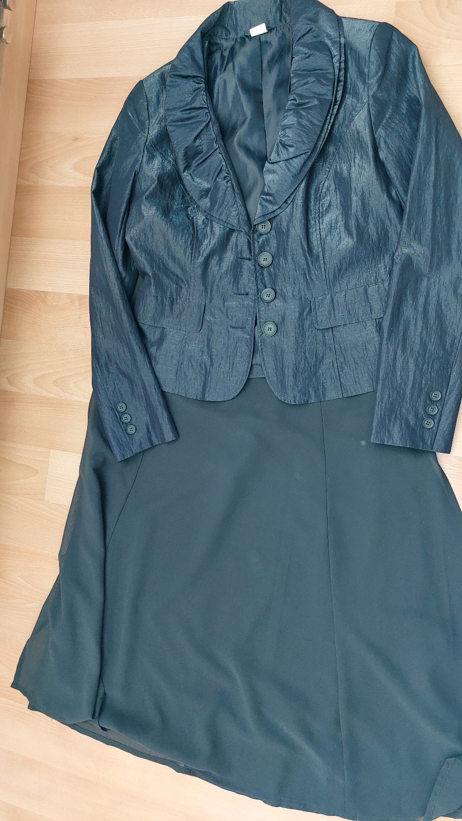 Sako lesklé. Sukňa ma spodnicku. Vrch je padavy ako tyl.