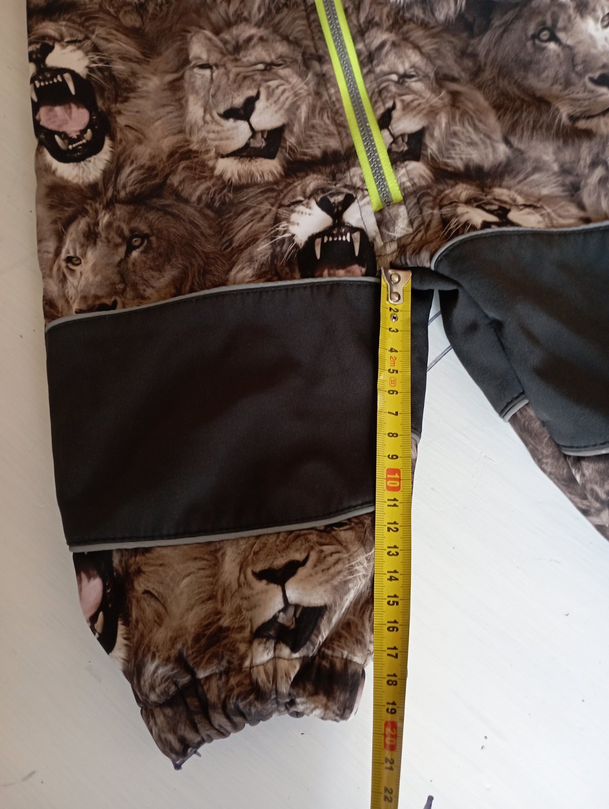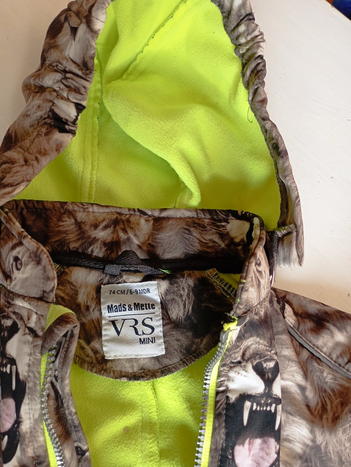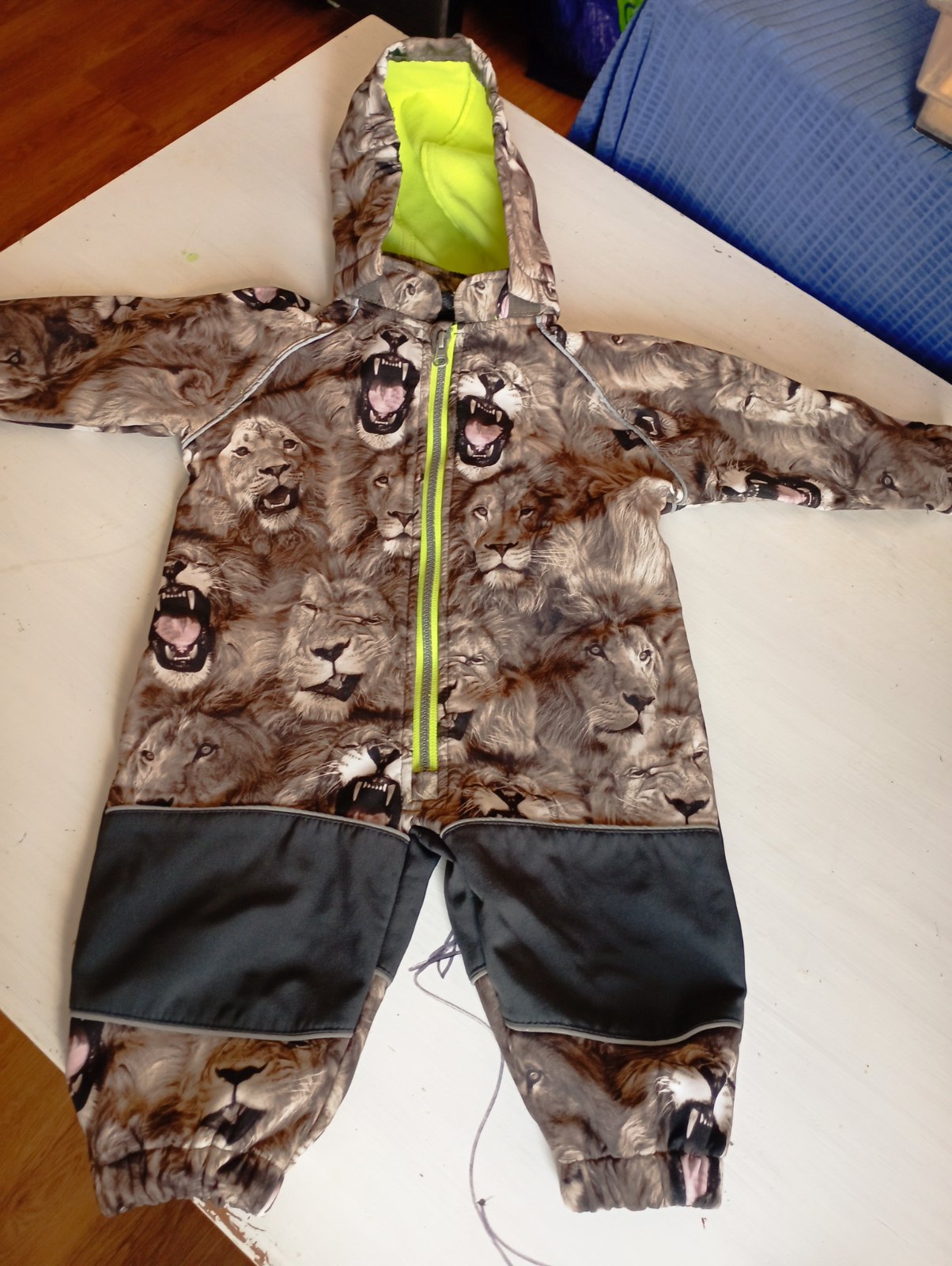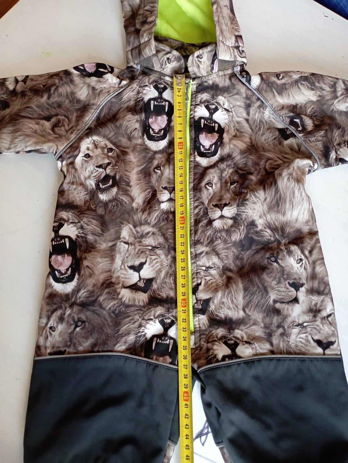 Jesenný/jarný softshellovy overal, kapucňa na suchý zips, rozmery na fotkách. Na štítku sú svetlohnedé fliaciky, neviem , od čoho, asi vznikli pri skladovaní - odfotila som. Nestihli sme vynosiť. Okrem fliackov ako novy