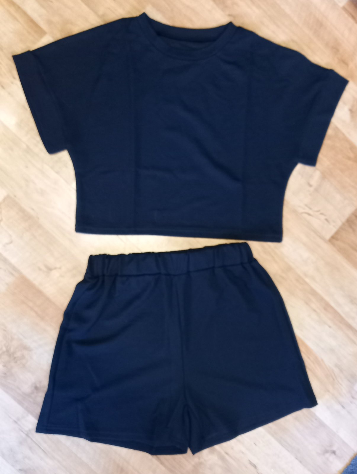 Súprava-croptop plus kraťasy,sýto čiernej farby,top stav,iba vyskúšaná